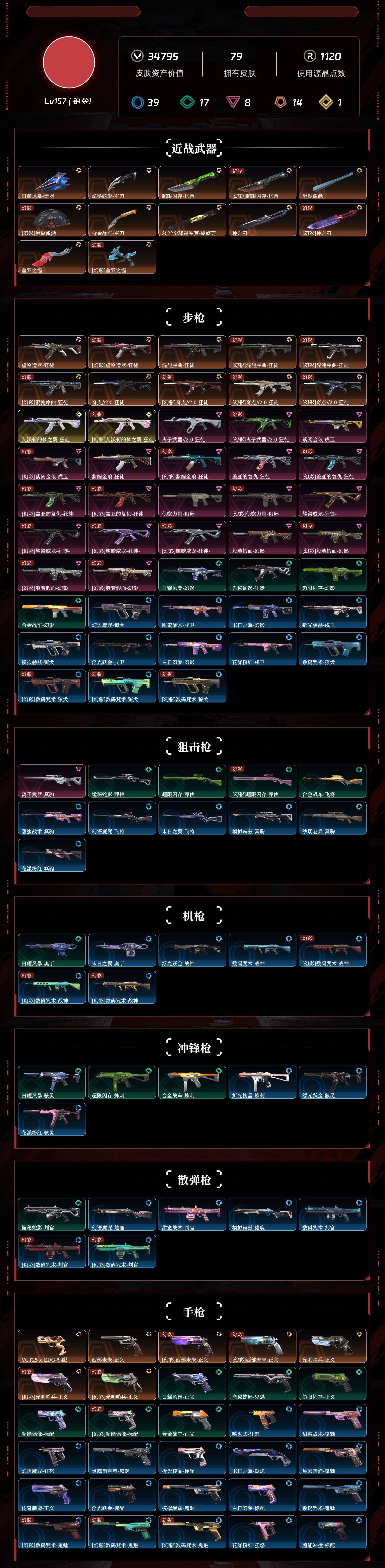 [9722928]r24502,有二次,剩余点券:60 lv157 ,皮肤总价值34795,铂金i,总皮肤79,刀皮8呛皮71终极1传奇6卓越8,具体详情看图