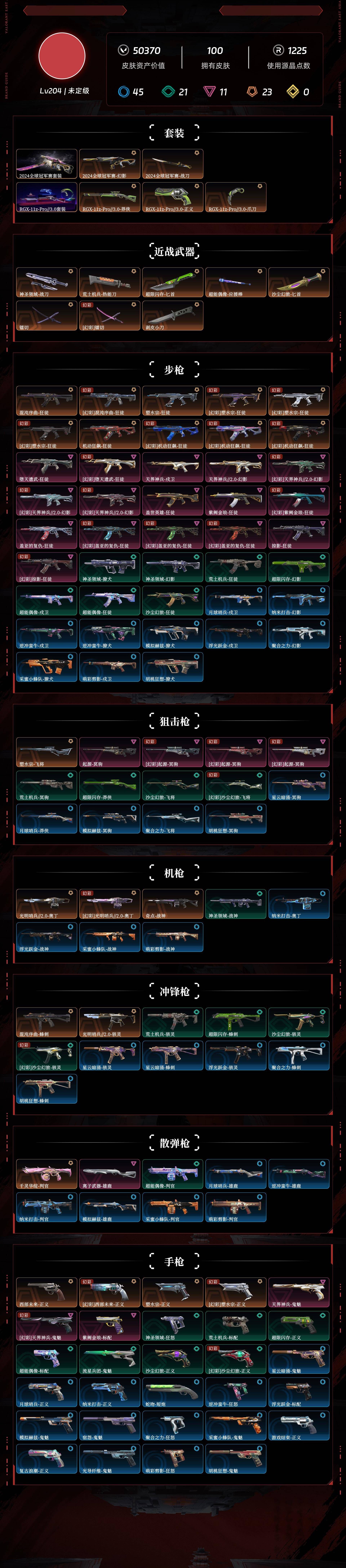 [9733839]r24276 剩余点券:85 lv204 ,皮肤总价值50370,未定级,总皮肤100,刀皮9呛皮91传奇14卓越11,套装2传奇2,2024全球冠军赛套装,rgx-11z-pro//3.0套装,具体详情看图
