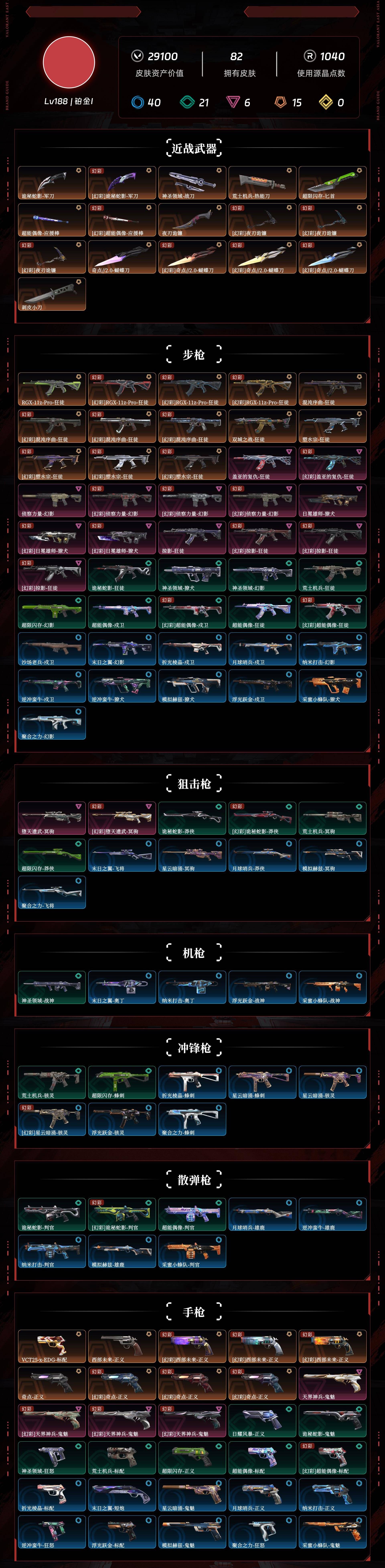 [10044175]r25429 lv188 ,皮肤总价值29100,铂金i,总皮肤82,刀皮8呛皮74传奇7卓越6,具体详情看图