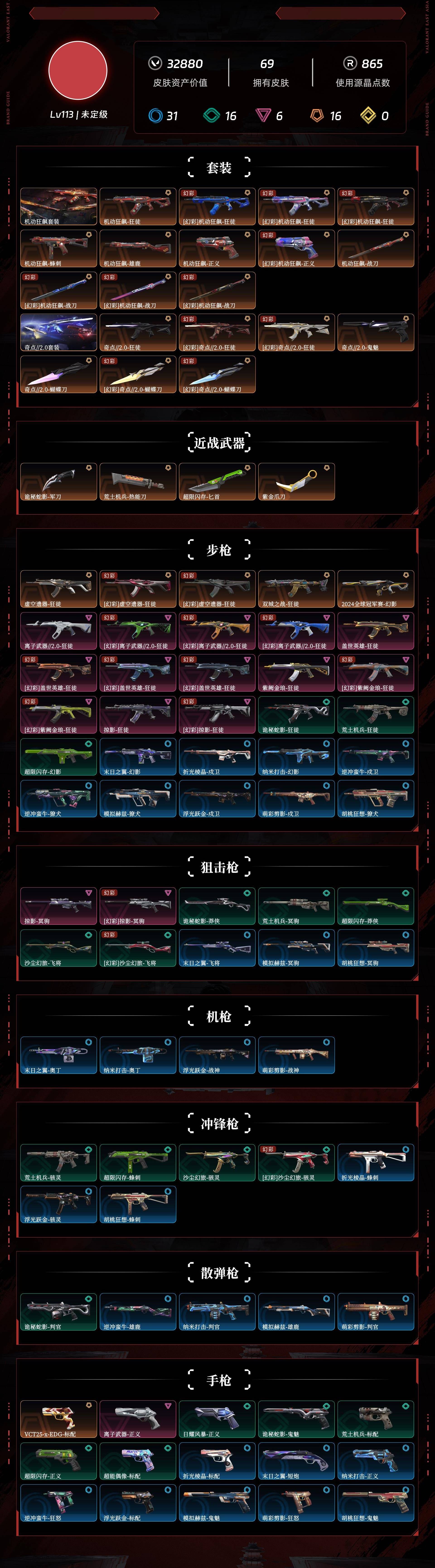 [10058602]r24267,有二次,剩余点券:52 lv113 ,皮肤总价值32880,未定级,总皮肤69,刀皮6呛皮63传奇10卓越6,套装2传奇2,奇点2.0套装,具体详情看图