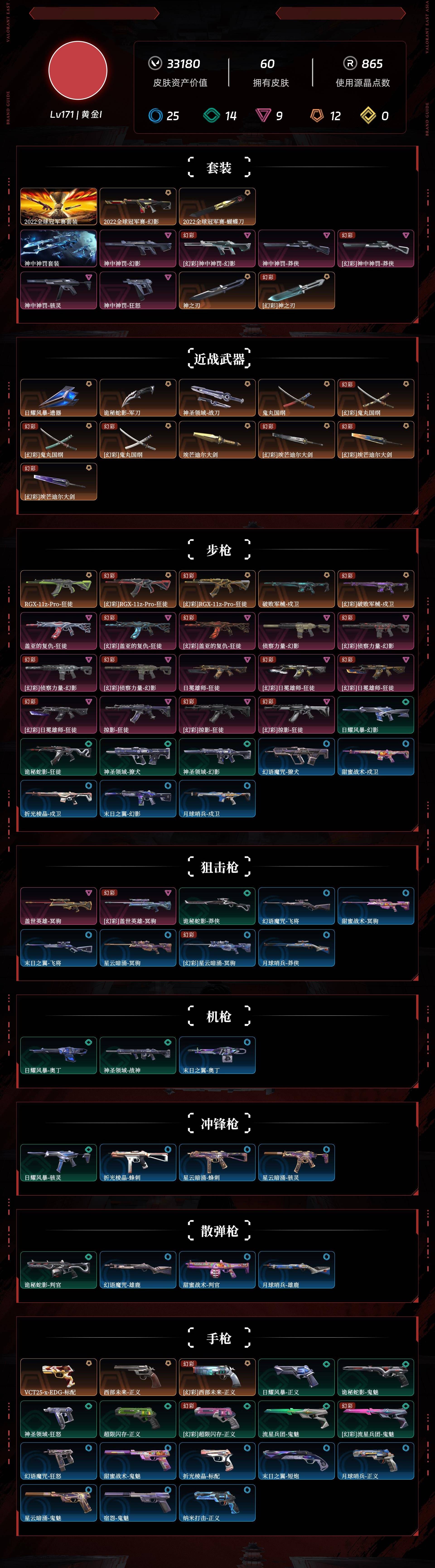 [10069043]r25515 剩余点券:49 lv171 ,皮肤总价值33180,黄金i,总皮肤60,刀皮7呛皮53传奇5卓越9,套装2传奇1卓越1,具体详情看图