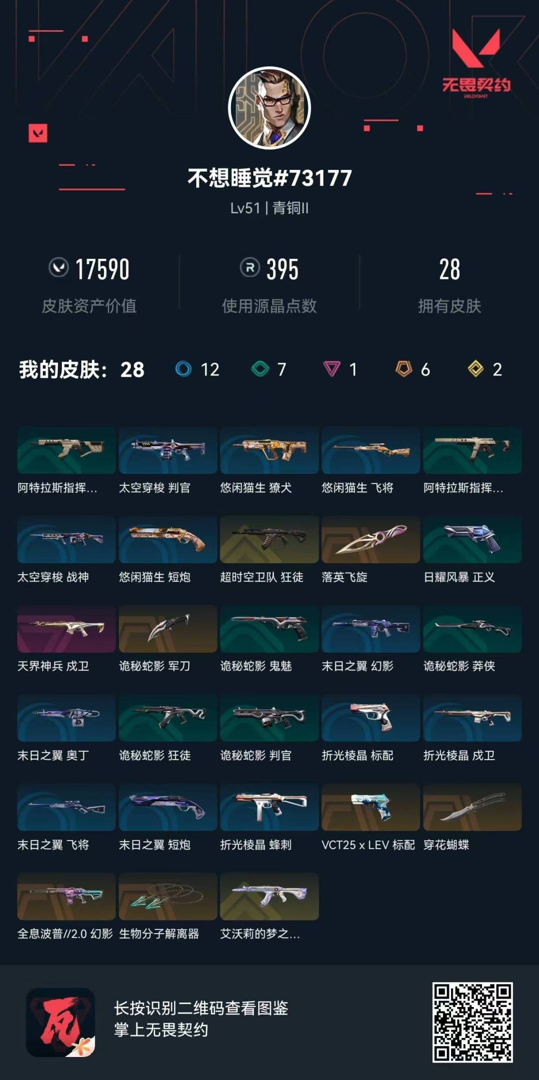 [10074935]6橙皮 2金皮 1紫皮 29皮肤 14英雄 45卡面 395已用源晶 青铜 佩呛皮肤:标配-vct25xlev 步呛皮肤:狂徒-超时空卫队狂徒-艾沃莉的梦之翼幻影-全息波普//2.0戍卫-天界神兵 近战武器皮肤:诡秘蛇影生物分子解离器穿花蝴蝶落英飞旋