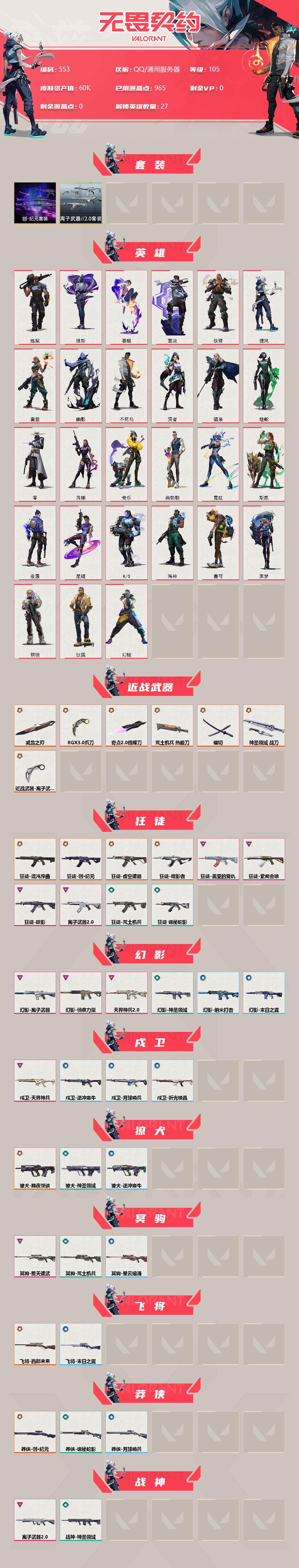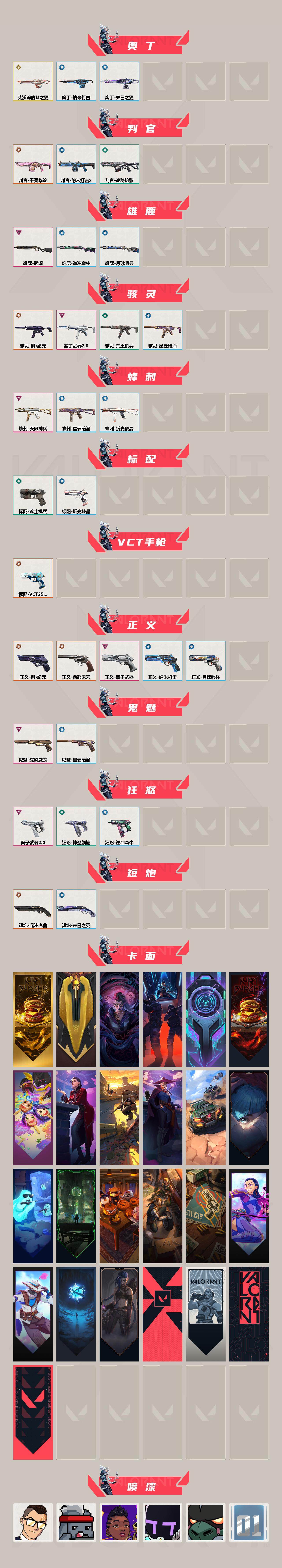 [10086115]【套装】:创·纪元套装,离子武器//2.0套装 【英雄】:幻棱,炼狱,维斯,暮蝶,钛狐,壹决,铁臂,捷风,雷兹,幽影,不死鸟,贤者,猎枭,蝰蛇,零,芮娜,奇乐,尚勃勒,霓虹,斯凯,夜露,星礈,k/o,海神,盖可,黑梦,钢锁 【近战 武器】:近战武器-rgx 11z pro//3.0 爪刀,近战武器-奇点//2.0 蝴蝶刀,近战武器-镭切,近战武器-威龙之刃,近战武器-离子武器//2.0 爪刀,近战武器-荒土机兵 热能刀,近战武器-神圣领域 战刀 【狂徒】:狂徒-混沌序曲,狂徒-创·纪元,狂徒-虚空遗器,狂徒-噬影者,狂徒-掠影,狂徒-盖亚的复仇,狂徒-紫阙金琅,狂徒-离子武器//2.0,狂徒-荒土机兵,狂徒-诡秘蛇影 【幻影】:幻影-离子武器,幻影-天界神兵//2.0,幻影-侦察力量,幻影-神圣领域,幻影-纳米打击,幻影-末日之翼 【戍卫】:戍卫-天界神兵,戍卫-逆冲蛮牛,戍卫-月球哨兵,戍卫-折光棱晶 【獠犬】:獠犬-黯夜怪谈,獠犬-神圣领域,獠犬-逆冲蛮牛 【冥驹】:冥驹-堕天遗武,冥驹-荒土机兵,冥驹-星云暗涌 【飞将】:飞将-西部未来,飞将-末日之翼 【莽侠】:莽侠-创·纪元,莽侠-诡秘蛇影,莽侠-月球哨兵 【战神】:战神-离子武器//2.0,战神-神圣领域 【奥丁】:奥丁-艾沃莉的梦之翼,奥丁-纳米打击,奥丁-末日之翼 【判官】:判官-千灵华绽,判官-诡秘蛇影,判官-纳米打击x 【雄鹿】:雄鹿-起源,雄鹿-逆冲蛮牛,雄鹿-月球哨兵 【骇灵】:骇灵-创·纪元,骇灵-离子武器//2.0,骇灵-荒土机兵,骇灵-星云暗涌 【蜂刺】:蜂刺-天界神兵,蜂刺-星云暗涌,蜂刺-折光棱晶 【标配】:标配-荒土机兵,标配-折光棱晶 【vct手呛】:标配-vct25 x lev 【正义】:正义-创·纪元,正义-西部未来,正义-离子武器,正义-纳米打击,正义-月球哨兵 【鬼魅】:鬼魅-耀鳞威龙,鬼魅-星云暗涌 【狂怒】:狂怒-离子武器//2.0,狂怒-神圣领域,狂怒-逆冲蛮牛 【短炮】:短炮-混沌序曲,短炮-末日之翼 【卡面】:终章:激斗汉堡 卡面,进入射程 卡面,分崩离析 卡面,纳米打击 卡面,抑制技术 卡面,激斗汉堡 卡面,瓦娃脸雪糕 p2 卡面,从黄昏到黎明 卡面,荒土机兵 卡面,银弹猎手 卡面,逆冲蛮牛 卡面,《双城之战》拥抱 卡面,精灵大战 卡面,欢迎来到底城 卡面,