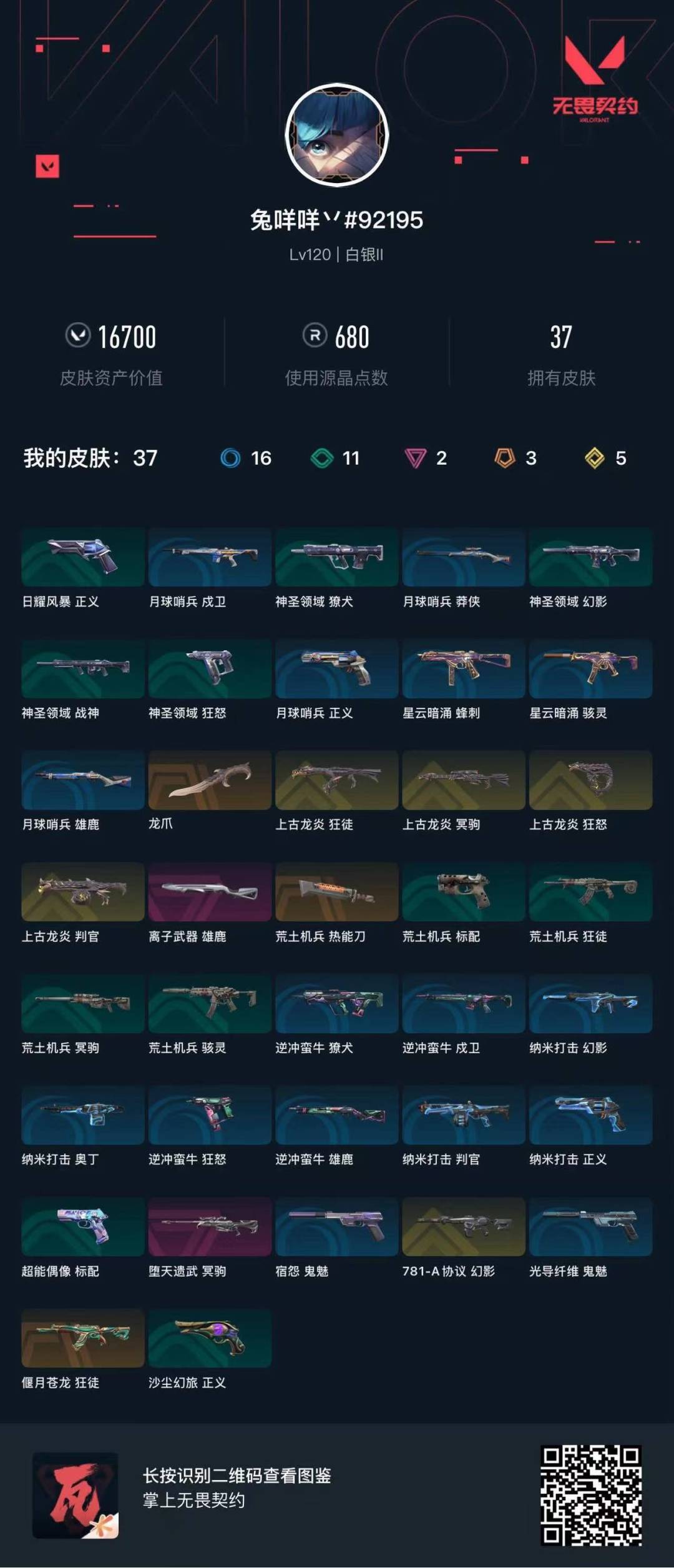 [10147078]3橙皮 5金皮 2紫皮 37皮肤 27英雄 78卡面 680已用源晶 白银 套装:上古龙炎套装 佩呛皮肤:狂怒-上古龙炎 霰弹呛皮肤:判官-上古龙炎雄鹿-离子武器 步呛皮肤:狂徒-上古龙炎狂徒-偃月苍龙幻影-781-a协议 狙击呛皮肤:冥驹-上古龙炎冥驹-堕天遗武 近战武器皮肤:龙爪荒土机兵热能刀