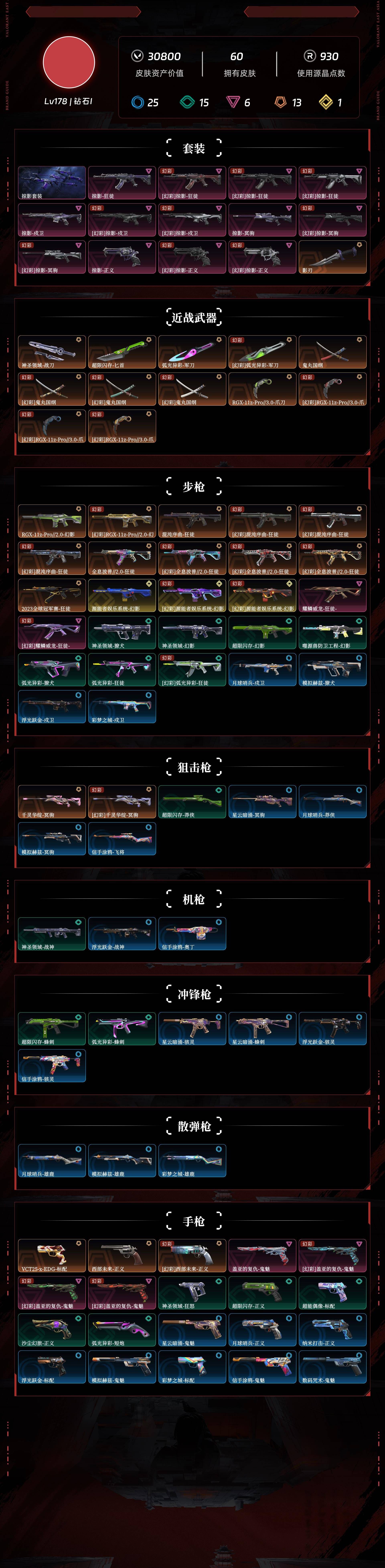 [10167640]r25885,有二次,剩余点券:195 lv178 ,皮肤总价值30800,钻石i,总皮肤60,刀皮6呛皮54终极1传奇7卓越6,套装1卓越1,具体详情看图