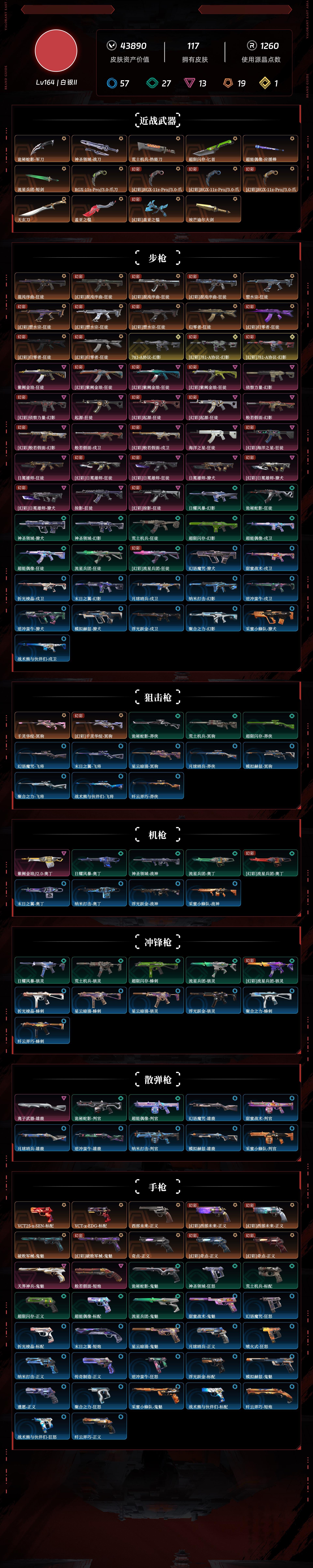[10185196]r24329,有二次,剩余点券:54 lv164 ,皮肤总价值43890,白银ii,总皮肤117,刀皮10呛皮107终极1传奇9卓越13,具体详情看图
