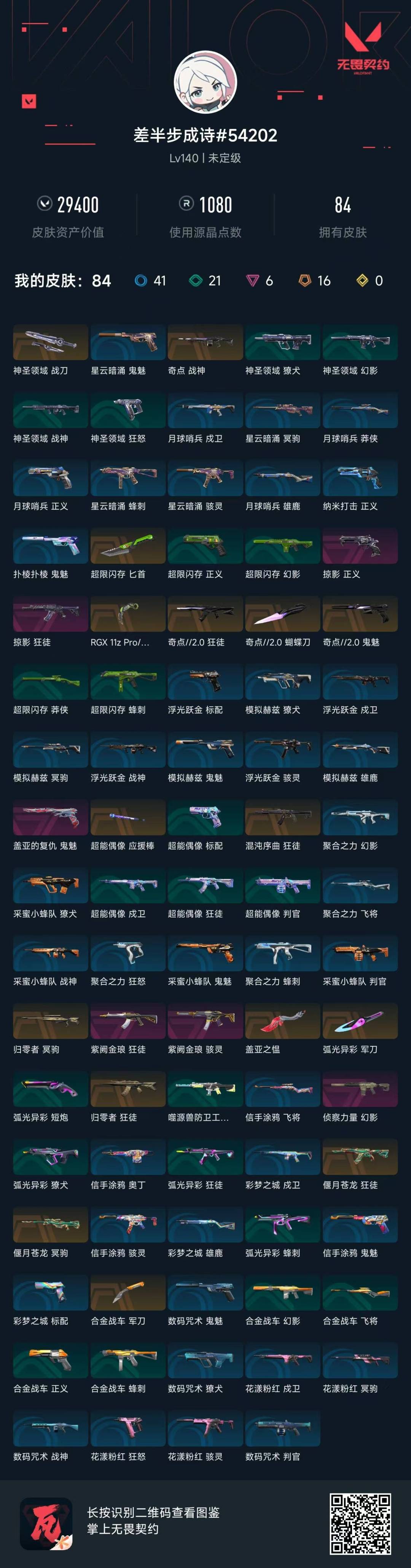 [10249076]16橙皮 6紫皮 84皮肤 26英雄 109卡面 1080已用源晶 未定级 套装:奇点//2.0套装 佩呛皮肤:鬼魅-奇点//2.0正义-掠影鬼魅-盖亚的复仇 冲锋呛皮肤:骇灵-紫阙金琅 步呛皮肤:狂徒-掠影狂徒-奇点//2.0狂徒-混沌序曲狂徒-紫阙金琅狂徒-归零者狂徒-偃月苍龙幻影-侦察力量 狙击呛皮肤:冥驹-偃月苍龙冥驹-归零者 机呛皮肤:战神-奇点 近战武器皮肤:神圣领域 战刀匕首-超限闪存蝴蝶刀-奇点//2.0爪刀-rgx 11z pro 3.0盖亚之愠超能偶像 应援棒军刀-弧光异彩军刀-合金战车