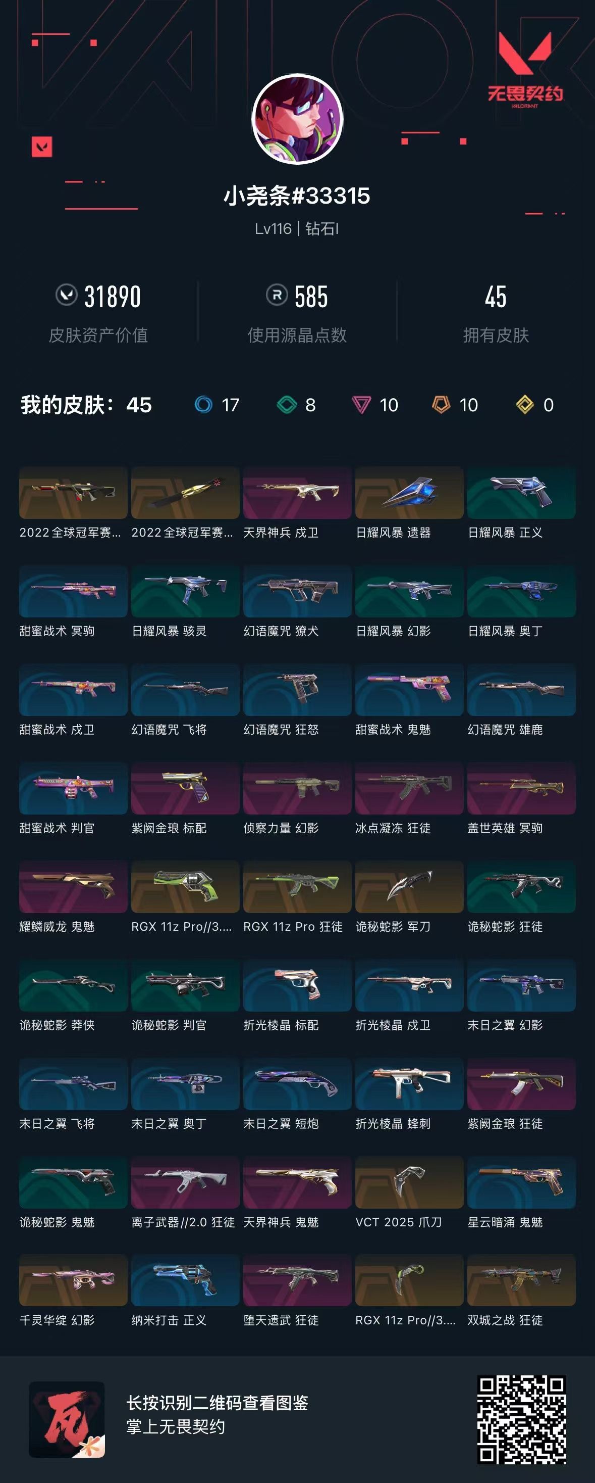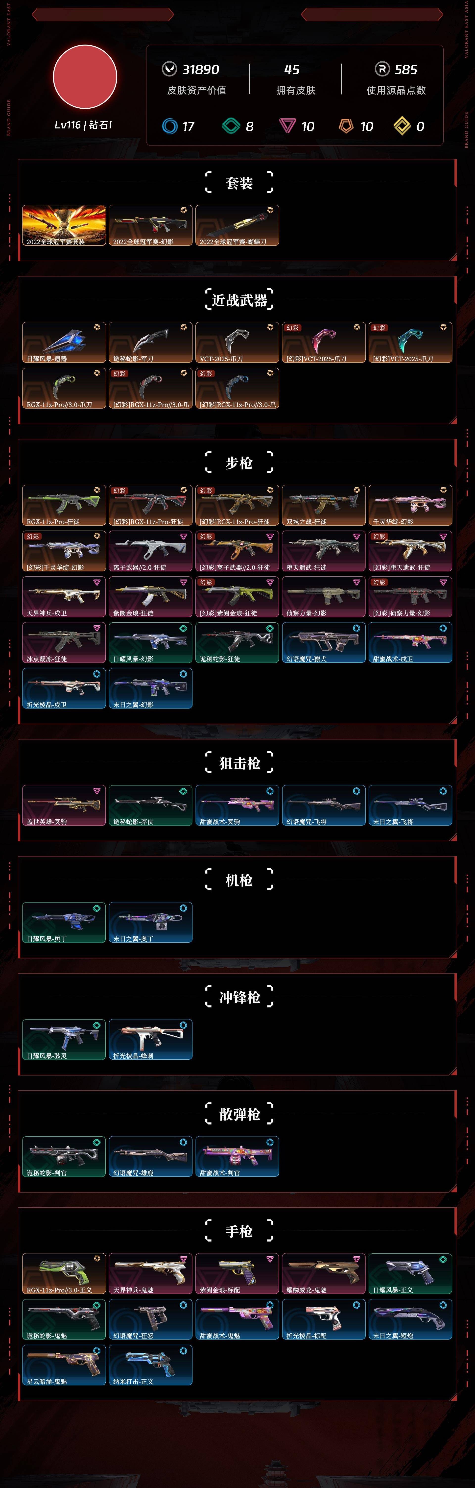 [10291610]r26412 lv116 ,皮肤总价值31890,钻石i,总皮肤45,刀皮5呛皮40传奇5卓越10,套装1传奇1,具体详情看图