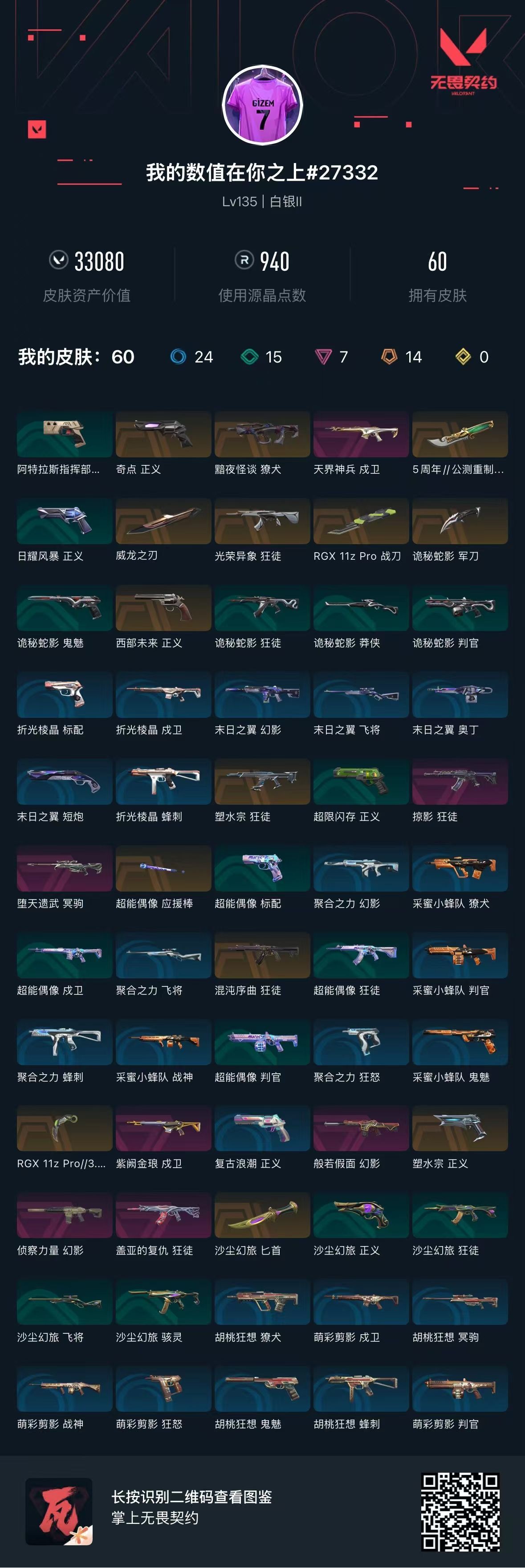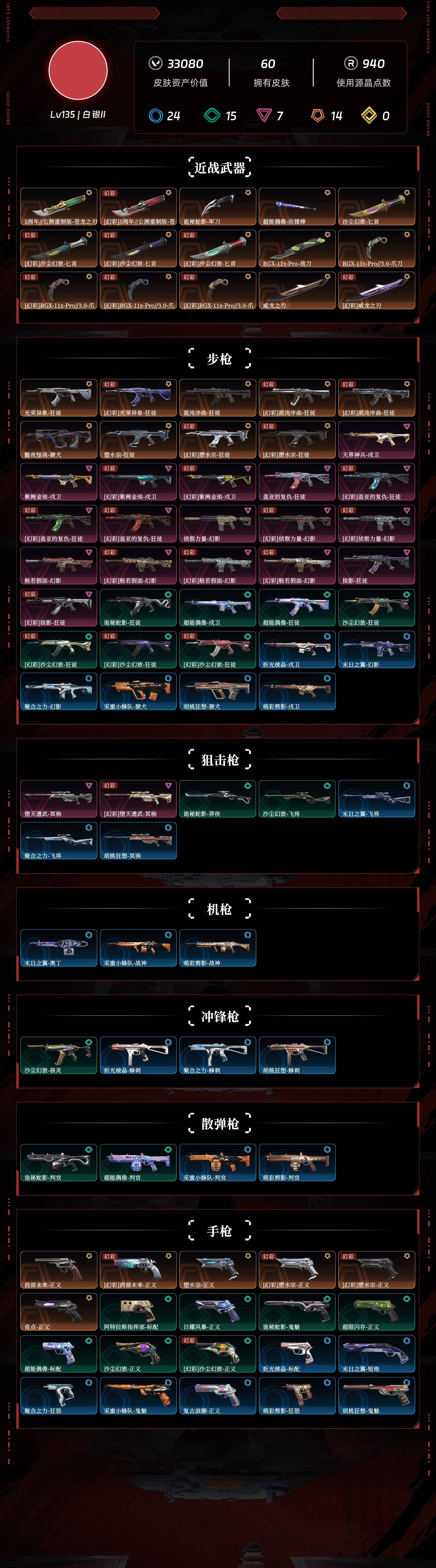 [10292387]r26421 lv135 ,皮肤总价值33080,白银ii,总皮肤60,刀皮7呛皮53传奇7卓越7,具体详情看图