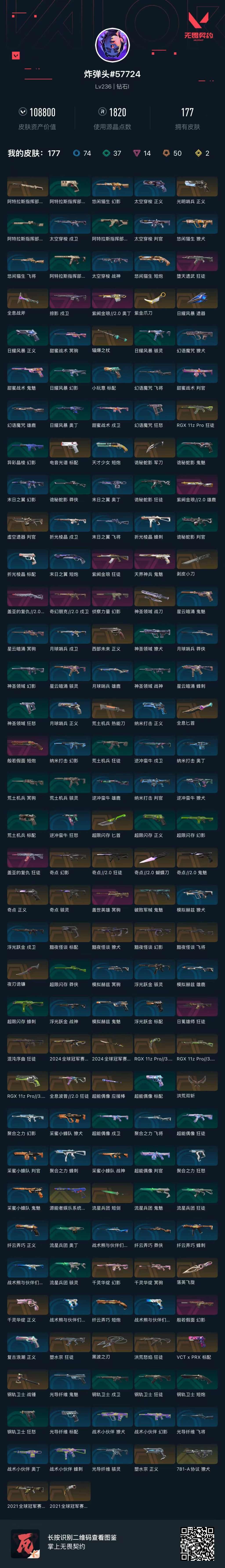 [10321084]r26292 lv236 ,皮肤总价值108800,钻石i,总皮肤177,刀皮22呛皮155终极2传奇28卓越14,套装5传奇5,2024全球冠军赛套装,2021全球冠军赛套装,奇点2.0套装,黯夜怪谈套装,rgx-11z-pro//3.0套装,具体详情看图