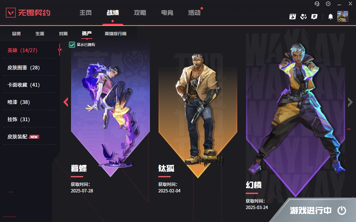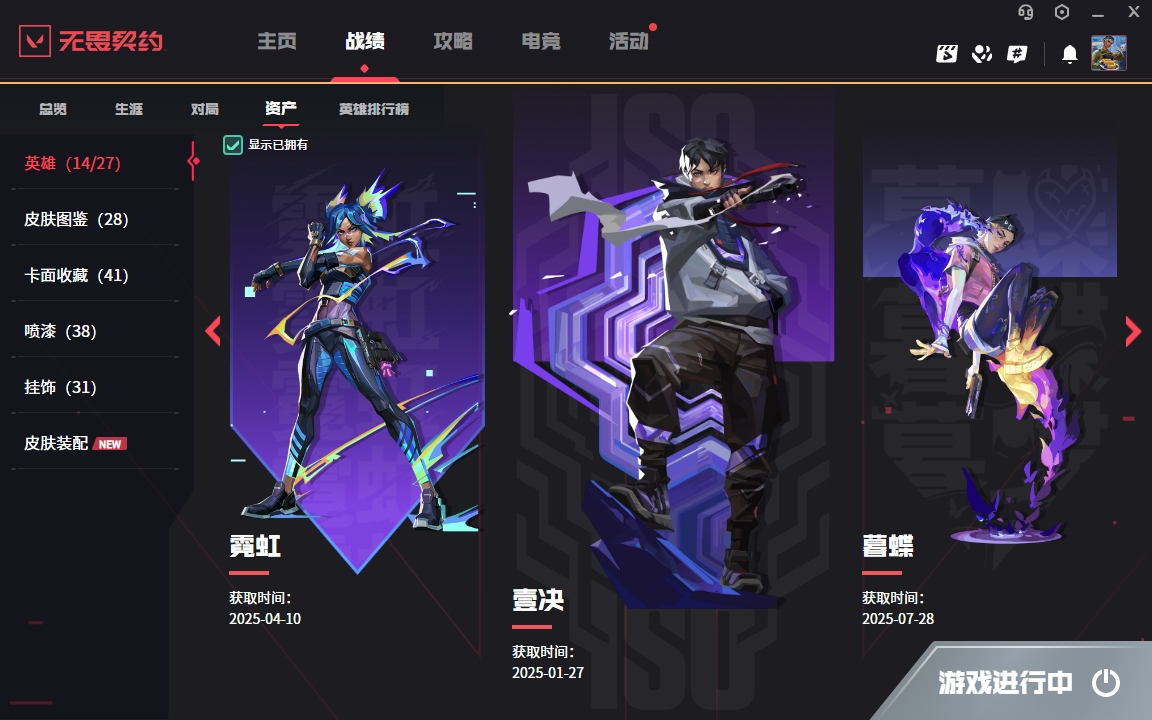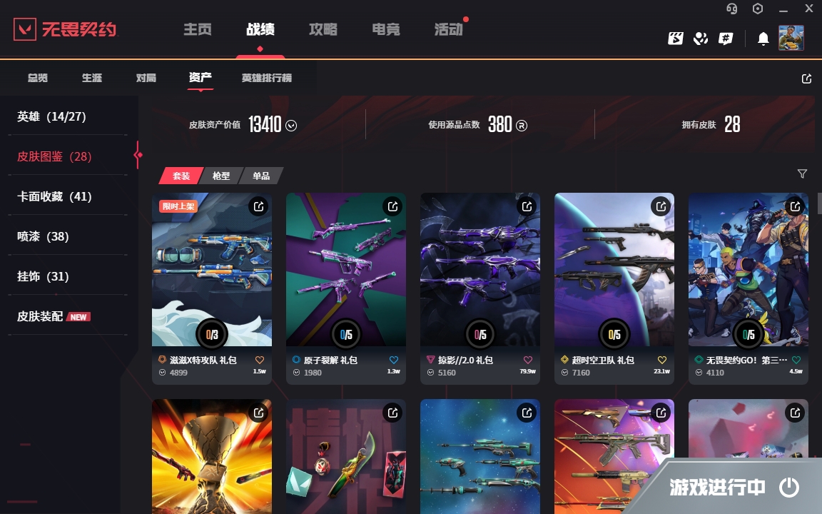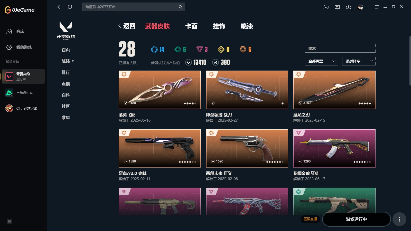 [10333165]【保证金商户】【编号46859】【14英雄28皮肤】【5传奇武器3卓越全是热门皮 不用再充钱】 落英飞旋 威龙之刃 奇点//2.0鬼魅 西部未来正义 紫阙金琅 狂徒 侦察力量幻影 盖亚的复仇狂徒