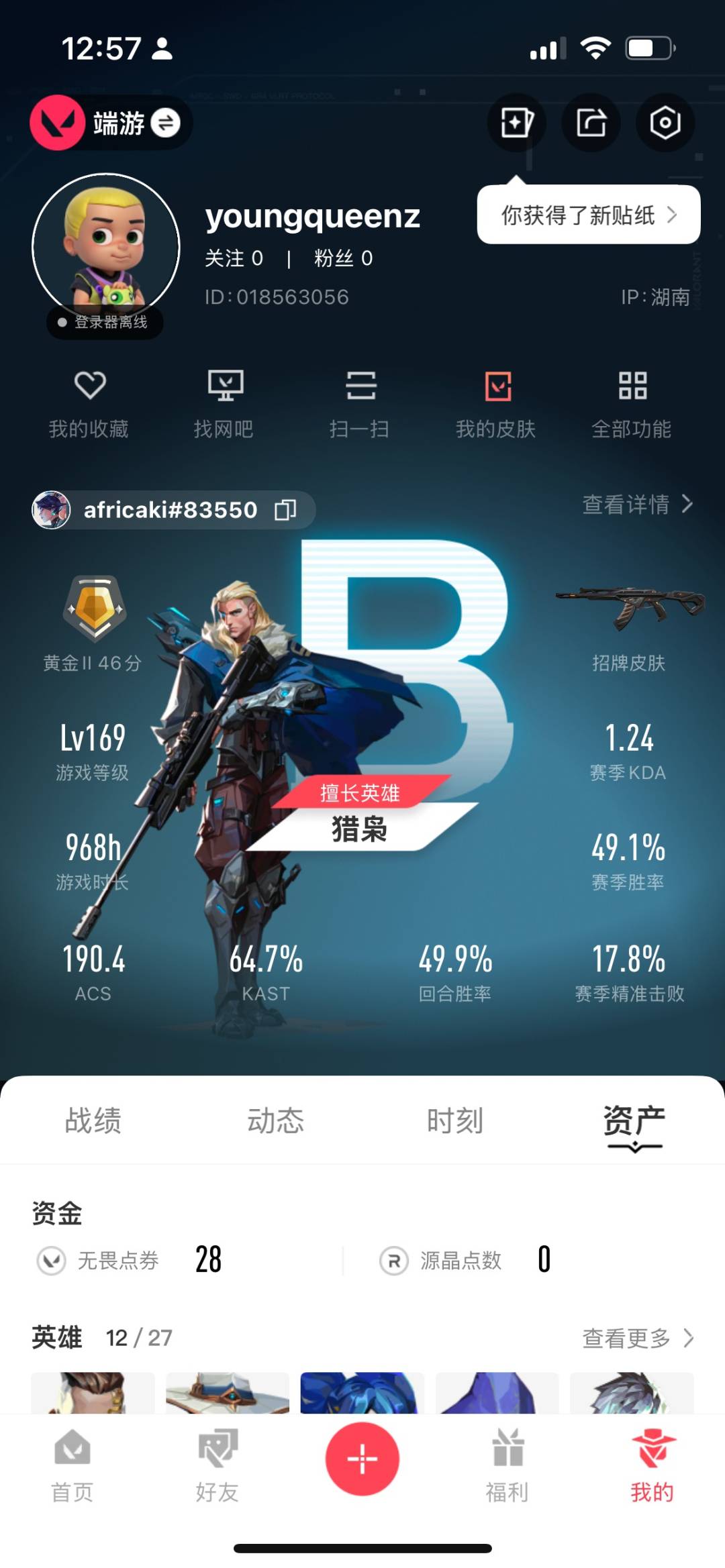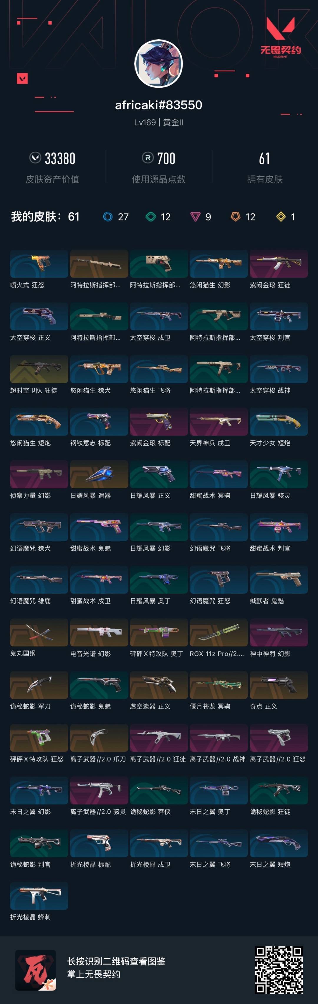 12橙皮 1金皮 9紫皮 61皮肤 12英雄 67卡面 700已用源晶 黄金 套装:离子武器2.0 佩呛皮肤:狂怒-离子武器2.0正义-虚空遗器正义-奇点狂怒-砰砰x特攻队标配-紫阙金琅 冲锋呛皮肤:骇灵-离子武器2.0 步呛皮肤:狂徒-离子武器2.0幻影-神中神罚幻影-电音光谱狂徒-