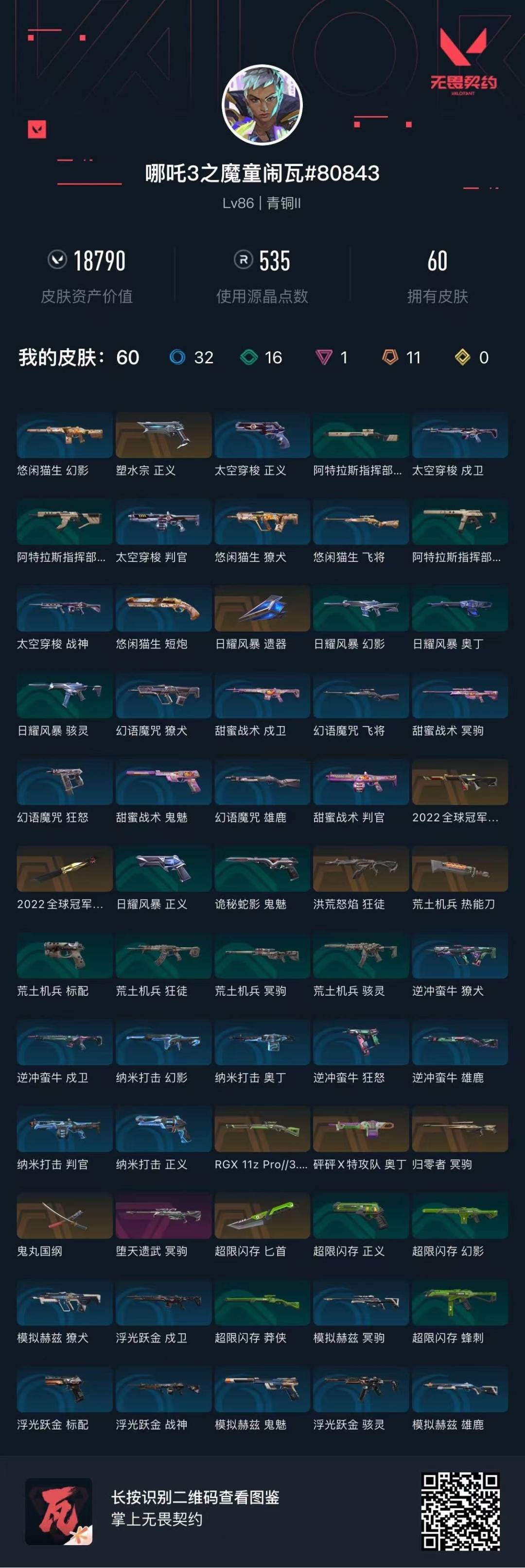 [10504369]11橙皮 1紫皮 60皮肤 27英雄 85卡面 535已用源晶 青铜 亮点皮肤:幻影-2022全球冠军赛2022全球冠军赛 蝴蝶刀 套装:2022全球冠军赛 佩呛皮肤:正义-塑水宗 步呛皮肤:狂徒-洪荒怒焰 狙击呛皮肤:莽侠-rgx 11z pro 3.0冥驹-归零者冥驹-堕天遗武 机呛皮肤:奥丁-砰砰x特攻队 近战武器皮肤:匕首-超限闪存鬼丸国纲荒土机兵热能刀