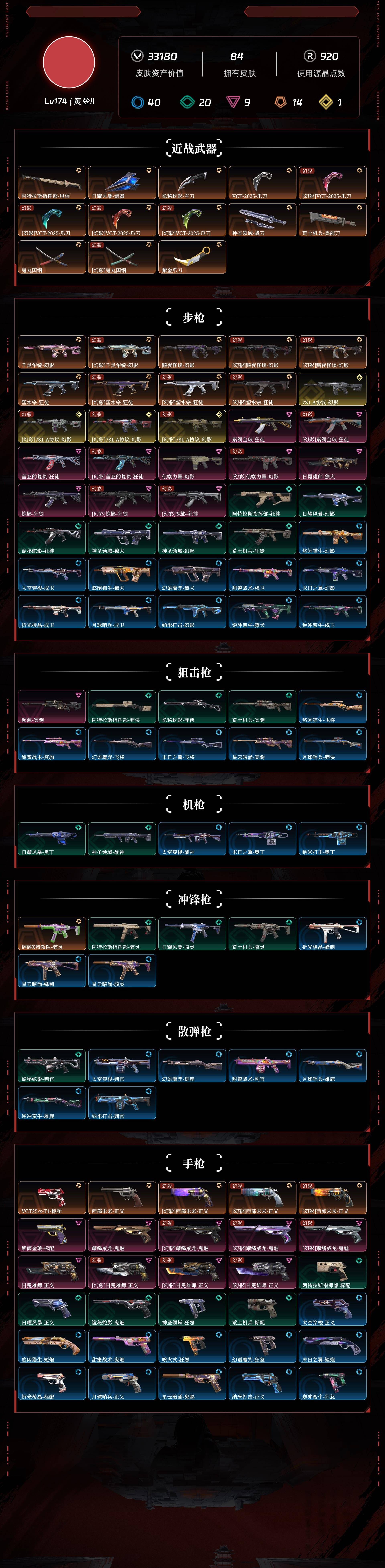 [10508170]r27179 有二次 剩余点券:74 lv174 ,皮肤总价值33180,黄金ii,总皮肤84,刀皮8呛皮76终极1传奇6卓越9,具体详情看图
