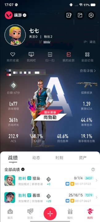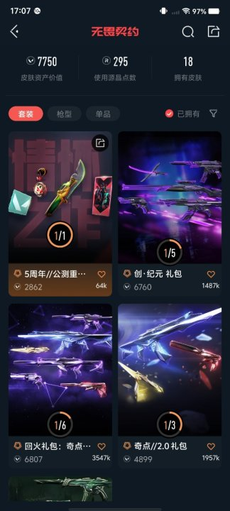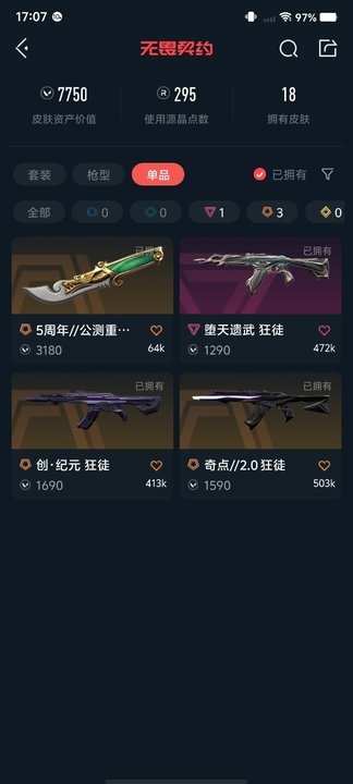 [10524025]s189066 无畏契约/77等级/白银段位/23英雄/18皮肤/资产7750/已使用r点295/剩余r点175/5周年//公测重制版-苍龙之刃,创·纪元-狂徒,奇点//2.0-狂徒,堕天遗武-狂徒