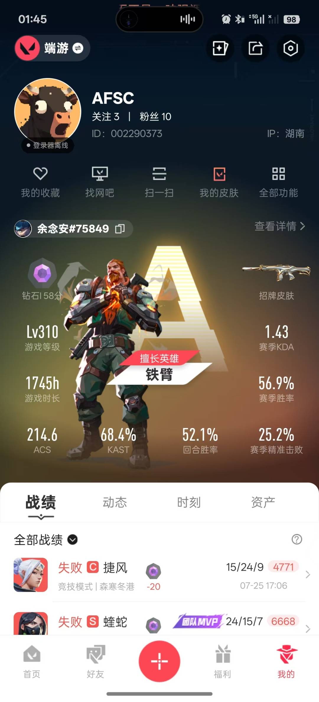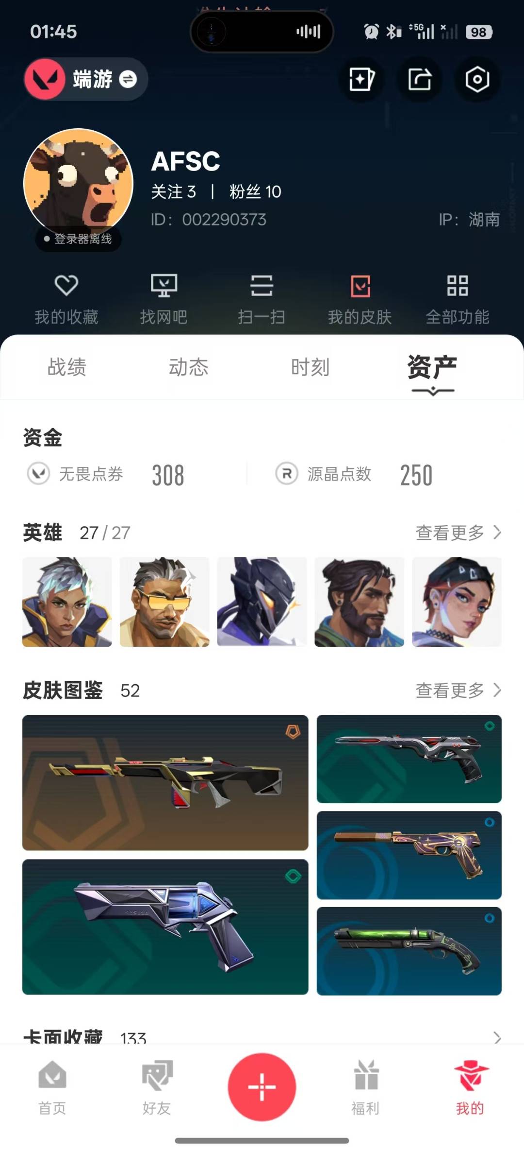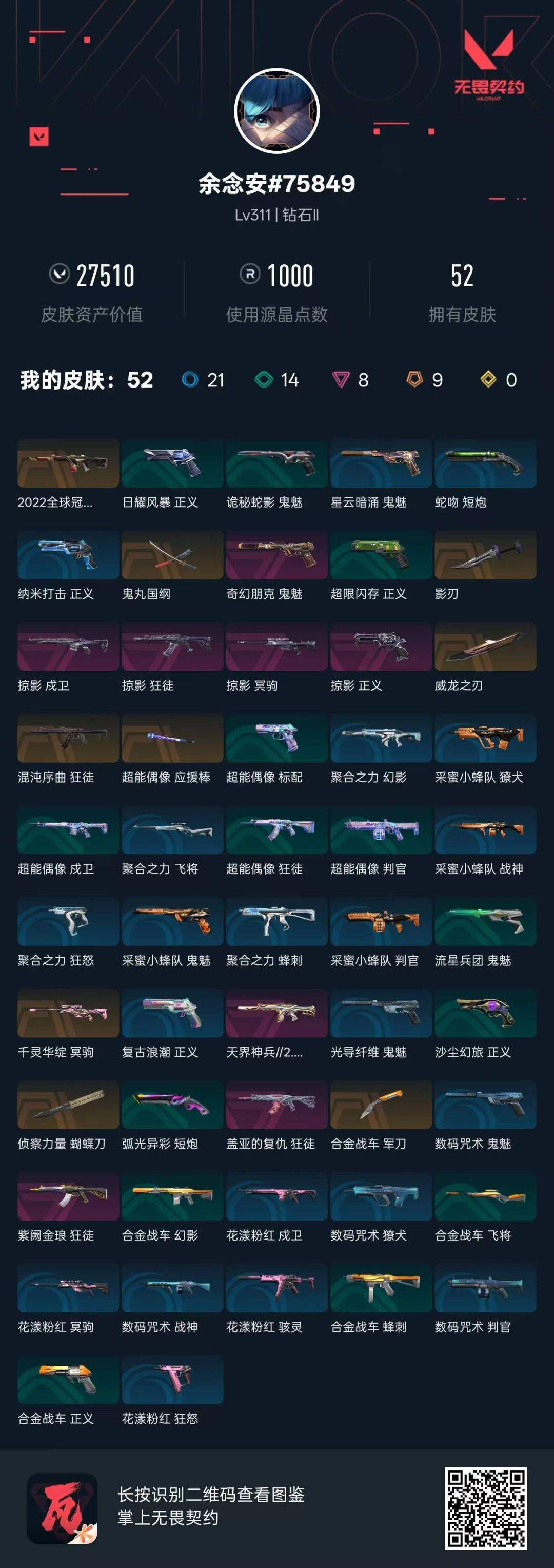 9橙皮 8紫皮 53皮肤 27英雄 136卡面 1000已用源晶 钻石 优质装备:掠影套装冥驹-千灵华绽狂徒-混沌序曲狂徒-掠影狂徒-紫阙金琅狂徒-盖亚的复仇幻影-天界神兵2.0正义-掠影冥驹-掠影戍卫-掠影军刀-合金战车蝴蝶刀-侦察力量威龙之刃鬼魅-奇幻朋克影刃鬼丸国