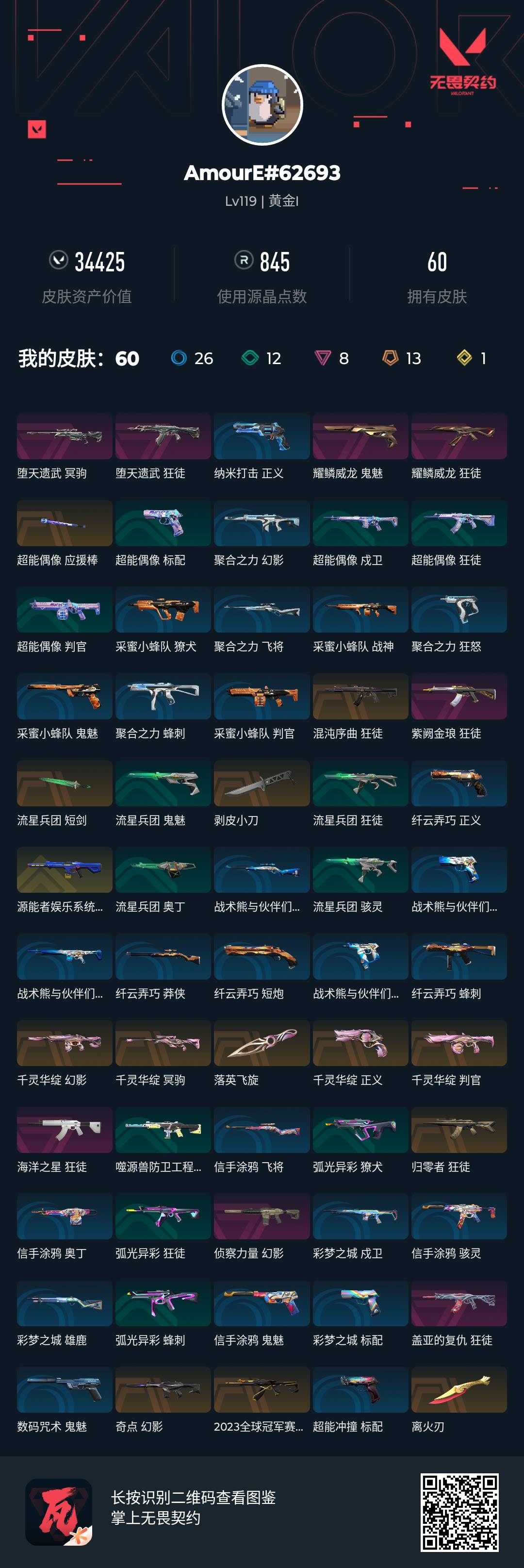 [11432956]b189729 (离火刃/千灵华绽套装)无畏契约/119等级/黄金段位/27英雄/60皮肤/34425资产/已使用r点845/剩余r点205/千灵华绽-幻影千灵华绽-冥驹千灵华绽-判官千灵华绽正义落英飞旋/超能偶像-应援棒,流星兵团-短剑,剥皮小刀,混沌序曲-狂徒,2023全球冠军赛-狂徒,归零者-狂徒,奇点-幻影,源能者娱乐系统-幻影,堕天遗武-狂徒,紫阙金琅-狂徒,盖亚的复仇-狂徒,侦察力量-幻影,耀鳞威龙-狂徒-,海洋之星-狂徒,堕天遗武-冥驹,耀鳞威龙-鬼魅