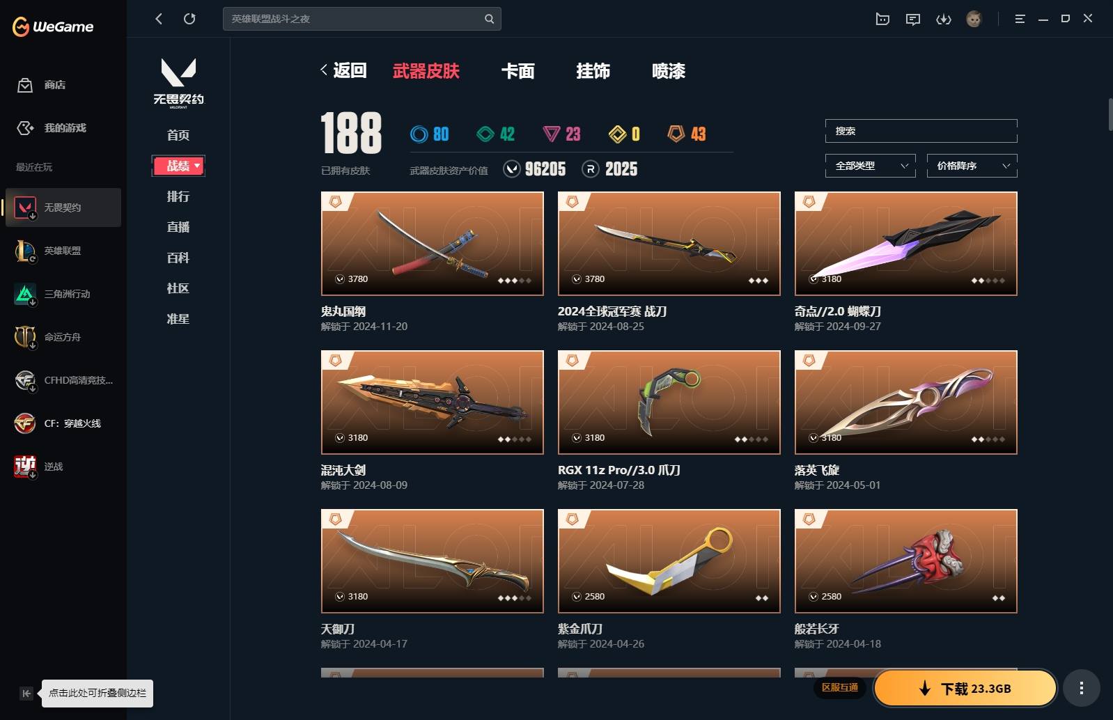XL 【实名情况】可二次实名 【排位情况】可排位 【账号状态】无封号 【区服】QQ 【游戏等级】Lv207 【游戏段位】未定级 【剩余V点】319 【剩余R点】65 【皮肤资产价值】96205 【使用R点】2025 【英雄数量】27 【皮肤数量】188 【卡面数量】199 【喷漆数量】194 【挂件数量】144 【拥有套装】混沌序曲套装(混沌序曲-狂徒混沌序曲-冥驹混沌序曲-蜂刺混沌序曲-短炮混沌大剑)千灵华绽套装(千灵华绽-幻影千灵华绽-冥驹千灵华绽-判官千灵华绽正义落英飞旋)奇点2.0套装(奇点2.0-狂徒奇点2.0-鬼魅奇点2.0-蝴蝶刀)般若假面2.0套装(般若假面2.0-狂徒般若假面2.0-獠犬般若假面2.0-战神般若假面2.0-狂怒鬼丸国纲)2024全球冠军赛套装(2024全球冠军赛-幻影2024全球冠军赛-战刀)RGX-11z-Pro3.0套装(RGX-11z-Pro3.0-莽侠RGX-11z-Pro3.0-正义RGX-11z-Pro3.0-爪刀)天界神兵2.0套装(天界神兵2.0-幻影天界神兵2.0-奥丁天界神兵2.0-判官天界神兵2.0-狂怒天御刀)般若假面套装(般若假面-幻影般若假面-戍卫般若假面-雄鹿般若假面-短炮般若长牙) 【拥有近战武器】诡秘蛇影-军刀,神圣领域-战刀,荒土机兵-热能刀,超限闪存-匕首,超能偶像-应援棒,流星兵团-短剑,珍珠棘贝-短剑,沙尘幻旅-匕首,弧光异彩-军刀,合金战车-军刀,紫金爪刀, 【拥有步枪】光明哨兵-狂徒,双城之战-狂徒,黯夜怪谈-幻影,洪荒怒焰-幻影,洪荒怒焰-狂徒,破败军械-戍卫,破败军械-幻影,塑水宗-狂徒,神中神罚-幻影,堕天遗武-狂徒,紫阙金琅2.0-幻影,紫阙金琅-狂徒,盖亚的复仇-狂徒,冰点凝冻-狂徒,掠影-狂徒,诡秘蛇影-狂徒,神圣领域-獠犬,神圣领域-幻影,荒土机兵-狂徒,超限闪存-幻影,超能偶像-戍卫,超能偶像-狂徒,流星兵团-狂徒,珍珠棘贝-幻影,珍珠棘贝-戍卫,沙尘幻旅-狂徒,巨神铁甲-狂徒,噬源兽防卫工程-幻影,弧光异彩-獠犬,弧光异彩-狂徒,合金战车-幻影,末日之翼-幻影,折光棱晶-戍卫,月球哨兵-戍卫,纳米打击-幻影,逆冲蛮牛-戍卫,逆冲蛮牛-獠犬,模拟赫兹-獠犬,浮光跃金-戍卫,聚合之力-幻影,采蜜小蜂队-獠犬,战术熊与伙伴们-戍卫,复古浪潮-獠犬,萌彩剪影-戍卫,胡桃狂想-獠犬,彩梦之城-戍卫,数码咒术-獠犬,花漾粉红-戍卫, 【拥有狙击枪】堕天遗武-冥驹,无垠星环-冥驹,诡秘蛇影-莽侠,荒土机兵-冥驹,超限闪存-莽侠,沙尘幻旅-飞将,合金战车-飞将,末日之翼-飞将,星云暗涌-冥驹,月球哨兵-莽侠,模拟赫兹-冥驹,聚合之力-飞将,战术熊与伙伴们-飞将,纤云弄巧-莽侠,深海水族-莽侠,复古浪潮-冥驹,胡桃狂想-冥驹,信手涂鸦-飞将,花漾粉红-冥驹, 【拥有机枪】神圣领域-战神,流星兵团-奥丁,末日之翼-奥丁,纳米打击-奥丁,浮光跃金-战神,采蜜小蜂队-战神,深海水族-战神,萌彩剪影-战神,信手涂鸦-奥丁,数码咒术-战神, 【拥有冲锋枪】紫阙金琅-骇灵,荒土机兵-骇灵,超限闪存-蜂刺,流星兵团-骇灵,珍珠棘贝-骇灵,沙尘幻旅-骇灵,弧光异彩-蜂刺,合金战车-蜂刺,折光棱晶-蜂刺,星云暗涌-骇灵,星云暗涌-蜂刺,浮光跃金-骇灵,聚合之力-蜂刺,纤云弄巧-蜂刺,深海水族-蜂刺,胡桃狂想-蜂刺,信手涂鸦-骇灵,花漾粉红-骇灵, 【拥有霰弹枪】诡秘蛇影-判官,超能偶像-判官,月球哨兵-雄鹿,逆冲蛮牛-雄鹿,纳米打击-判官,模拟赫兹-雄鹿,采蜜小蜂队-判官,复古浪潮-雄鹿,萌彩剪影-判官,彩梦之城-雄鹿,数码咒术-判官, 【拥有手枪】VCT-x-EDG-标配,VCT-x-PRX-标配,奇点-正义,耀鳞威龙-鬼魅,诡秘蛇影-鬼魅,神圣领域-狂怒,荒土机兵-标配,超限闪存-正义,超能偶像-标配,流星兵团-鬼魅,珍珠棘贝-狂怒,沙尘幻旅-正义,弧光异彩-短炮,合金战车-正义,折光棱晶-标配,末日之翼-短炮,星云暗涌-鬼魅,月球哨兵-正义,纳米打击-正义,灵魂消声者-鬼魅,逆冲蛮牛-狂怒,模拟赫兹-鬼魅,浮光跃金-标配,聚合之力-狂怒,采蜜小蜂队-鬼魅,纤云弄巧-正义,战术熊与伙伴们-狂怒,纤云弄巧-短炮,战术熊与伙伴们-标配,复古浪潮-正义,深海水族-短炮,萌彩剪影-狂怒,胡桃狂想-鬼魅,信手涂鸦-鬼魅,彩梦之城-标配,花漾粉红-狂怒,数码咒术-鬼魅,超能冲撞-标配, 【稀有挂件】V25第三幕超凡挂饰,第九季超凡挂饰,终章猫猫木乃伊挂饰,猫猫木乃伊挂饰,无畏契约GO第一卷芮娜挂饰,无畏契约GO第一卷零挂饰,拳击战术熊挂饰,熔岩灯挂饰,2024全球冠军赛挂饰,糖葫芦挂饰,超能偶像挂饰,袖珍捷风挂饰,迷你浓缩挂饰,采蜜小蜂队挂饰,第八季青铜挂饰,终章迷你机甲挂饰,战术河童挂饰,迷你机甲挂饰,章鱼烧先生挂饰,云开见日挂饰,传世莲华挂饰,好运福爪挂饰,第七季青铜挂饰,幸运中国结挂饰,章鱼小弟挂饰,终章企鹅陷阱挂饰,机器伙伴挂饰, 【卡面信息】情人节不死鸟卡面,分崩离析卡面,双城之战拥抱卡面,超能偶像卡面,逆向独行卡面,RGX11zPro30卡面,清风徐来卡面,千灵华绽卡面,天界神兵20卡面,虹吸式咖啡壶卡面,Luie卡面,势不可挡捷风卡面,无畏