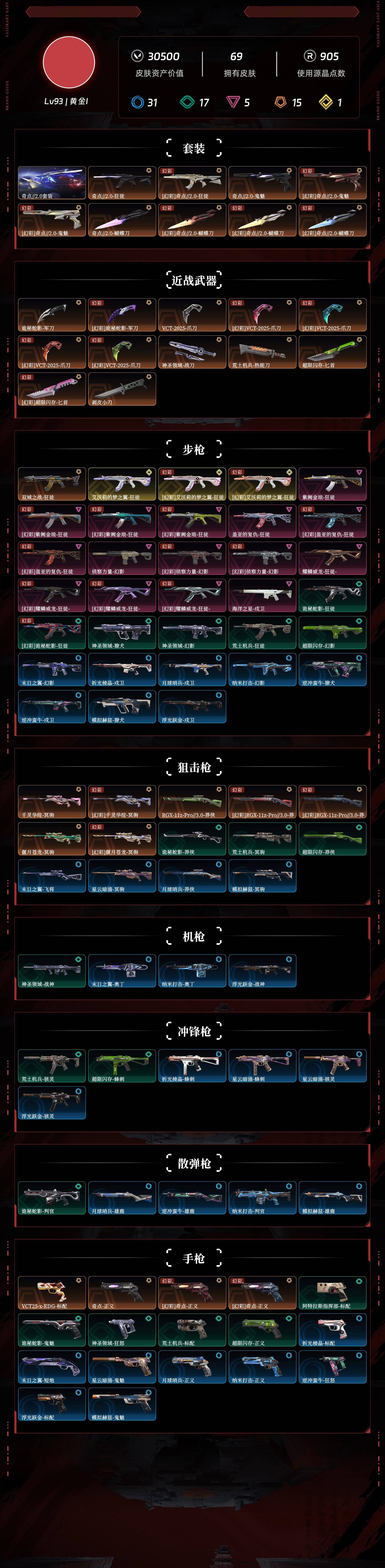 [11595787]r30004 lv93 ,皮肤总价值30500,黄金i,总皮肤69,刀皮7呛皮62终极1传奇8卓越5,套装1传奇1,奇点2.0套装,具体详情看图