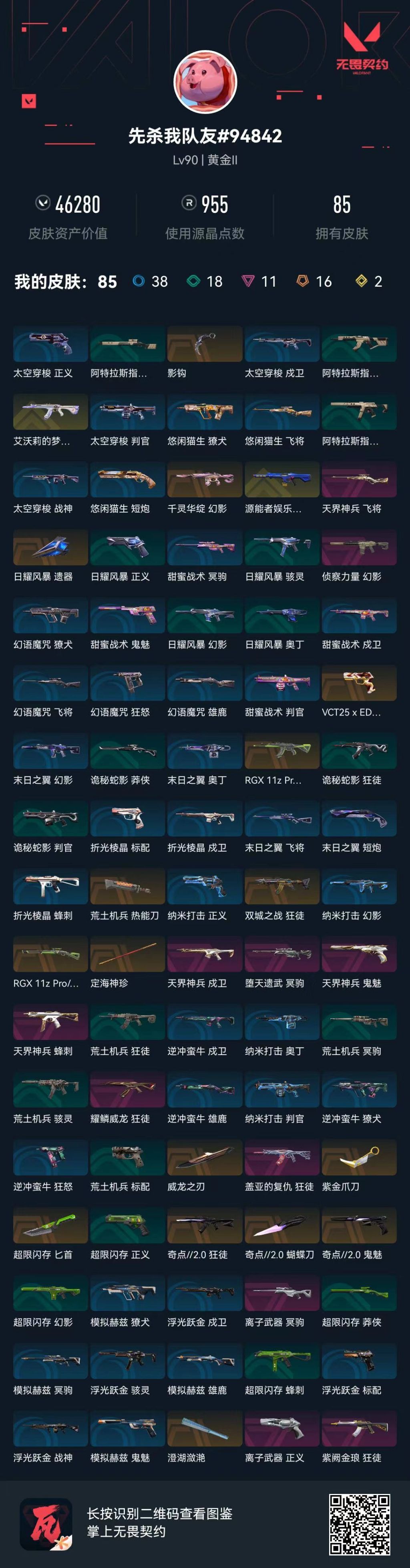 [11601781]r26924 lv90 ,皮肤总价值46280,黄金ii,总皮肤85,刀皮9呛皮76终极2传奇7卓越11,套装1传奇1,奇点2.0套装,具体详情看图