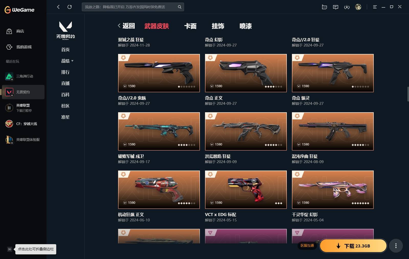 XL 【实名情况】可二次实名 【排位情况】可排位 【账号状态】无封号 【区服】QQ 【游戏等级】Lv170 【游戏段位】黄金III 【剩余V点】92 【剩余R点】0 【皮肤资产价值】114480 【使用R点】1520 【英雄数量】27 【皮肤数量】147 【卡面数量】190 【喷漆数量】144 【挂件数量】128 【拥有套装】西部未来套装(西部未来-幻影西部未来-奥丁西部未来-飞将西部未来-正义未来开拓者)创纪元套装(创·纪元-狂徒创·纪元-莽侠创·纪元-骇灵创·纪元-正义镭切)上古龙炎套装(上古龙炎-狂徒上古龙炎-冥驹上古龙炎-判官上古龙炎-狂怒龙爪)归零者2.0套装(归零者//2.0-幻影归零者//2.0-戍卫归零者//2.0-莽侠归零者//2.0-正义生物分子解离器)奇点2.0套装(奇点//2.0-狂徒奇点//2.0-鬼魅奇点//2.0-蝴蝶刀)般若假面2.0套装(般若假面//2.0-狂徒般若假面//2.0-獠犬般若假面//2.0-战神般若假面//2.0-狂怒鬼丸国纲)2024全球冠军赛套装(2024全球冠军赛-幻影2024全球冠军赛-战刀)掠影套装(掠影-狂徒掠影-冥驹掠影-戍卫掠影-正义影刃) 【拥有近战武器】神圣领域-战刀,VCT-2025-爪刀,荒土机兵-热能刀,超限闪存-匕首,超能偶像-应援棒,流星兵团-短剑,珍珠棘贝-短剑,剥皮小刀, 【拥有步枪】混沌序曲-狂徒,双城之战-狂徒,千灵华绽-幻影,洪荒怒焰-狂徒,破败军械-戍卫,塑水宗-狂徒,归零者-狂徒,奇点-幻影,781-A协议-幻影,艾沃莉的梦之翼-狂徒,源能者娱乐系统-幻影,堕天遗武-狂徒,盖世英雄-狂徒,紫阙金琅-狂徒,盖亚的复仇-狂徒,海洋之星-狂徒,日冕雄师-狂徒,诡秘蛇影-狂徒,神圣领域-獠犬,神圣领域-幻影,荒土机兵-狂徒,超限闪存-幻影,超能偶像-戍卫,超能偶像-狂徒,流星兵团-狂徒,珍珠棘贝-幻影,珍珠棘贝-戍卫,折光棱晶-戍卫,月球哨兵-戍卫,纳米打击-幻影,逆冲蛮牛-戍卫,逆冲蛮牛-獠犬,模拟赫兹-獠犬,浮光跃金-戍卫,聚合之力-幻影,采蜜小蜂队-獠犬,战术熊与伙伴们-戍卫,复古浪潮-獠犬, 【拥有狙击枪】起源-冥驹,荒土机兵-冥驹,超限闪存-莽侠,末日之翼-飞将,星云暗涌-冥驹,月球哨兵-莽侠,模拟赫兹-冥驹,聚合之力-飞将,战术熊与伙伴们-飞将,纤云弄巧-莽侠,复古浪潮-冥驹,深海水族-莽侠, 【拥有机枪】神圣领域-战神,流星兵团-奥丁,纳米打击-奥丁,浮光跃金-战神,采蜜小蜂队-战神,深海水族-战神, 【拥有冲锋枪】奇点-骇灵,荒土机兵-骇灵,超限闪存-蜂刺,流星兵团-骇灵,珍珠棘贝-骇灵,折光棱晶-蜂刺,星云暗涌-骇灵,星云暗涌-蜂刺,浮光跃金-骇灵,聚合之力-蜂刺,纤云弄巧-蜂刺,深海水族-蜂刺, 【拥有霰弹枪】诡秘蛇影-判官,超能偶像-判官,月球哨兵-雄鹿,逆冲蛮牛-雄鹿,纳米打击-判官,模拟赫兹-雄鹿,采蜜小蜂队-判官,复古浪潮-雄鹿, 【拥有手枪】VCT-x-EDG-标配,黯夜怪谈-标配,塑水宗-正义,机动狂飙-正义,奇点-正义,盖世英雄-鬼魅,神圣领域-狂怒,荒土机兵-标配,超限闪存-正义,超能偶像-标配,流星兵团-鬼魅,珍珠棘贝-狂怒,折光棱晶-标配,末日之翼-短炮,星云暗涌-鬼魅,月球哨兵-正义,纳米打击-正义,逆冲蛮牛-狂怒,模拟赫兹-鬼魅,浮光跃金-标配,聚合之力-狂怒,采蜜小蜂队-鬼魅,战术熊与伙伴们-标配,纤云弄巧-短炮,战术熊与伙伴们-狂怒,纤云弄巧-正义,复古浪潮-正义,深海水族-短炮, 【稀有挂件】V25第三幕铂金挂饰,幸运星挂饰,第九季钻石挂饰,终章猫猫木乃伊挂饰,猫猫木乃伊挂饰,无畏契约GO第一卷芮娜挂饰,无畏契约GO第一卷零挂饰,拳击战术熊挂饰,熔岩灯挂饰,金属蝶翼挂饰,2024全球冠军赛挂饰,袖珍捷风挂饰,糖葫芦挂饰,超能偶像挂饰,迷你浓缩挂饰,采蜜小蜂队挂饰,第八季铂金挂饰,薰衣草之心挂饰,终章迷你机甲挂饰,迷你机甲挂饰,云开见日挂饰,章鱼烧先生挂饰,战术河童挂饰,传世莲华挂饰,瞄这里挂饰,好运福爪挂饰,章鱼小弟挂饰,无畏契约GO第一卷奇乐挂饰,无畏契约GO第一卷捷风挂饰, 【卡面信息】势不可挡幽影卡面,VCT2025CN联赛卡面,西部未来卡面,先驱者卡面,九命灵猫卡面,分崩离析卡面,许愿星砂卡面,双城之战拥抱卡面,超能偶像卡面,清风徐来卡面,虹吸式咖啡壶卡面,无畏1