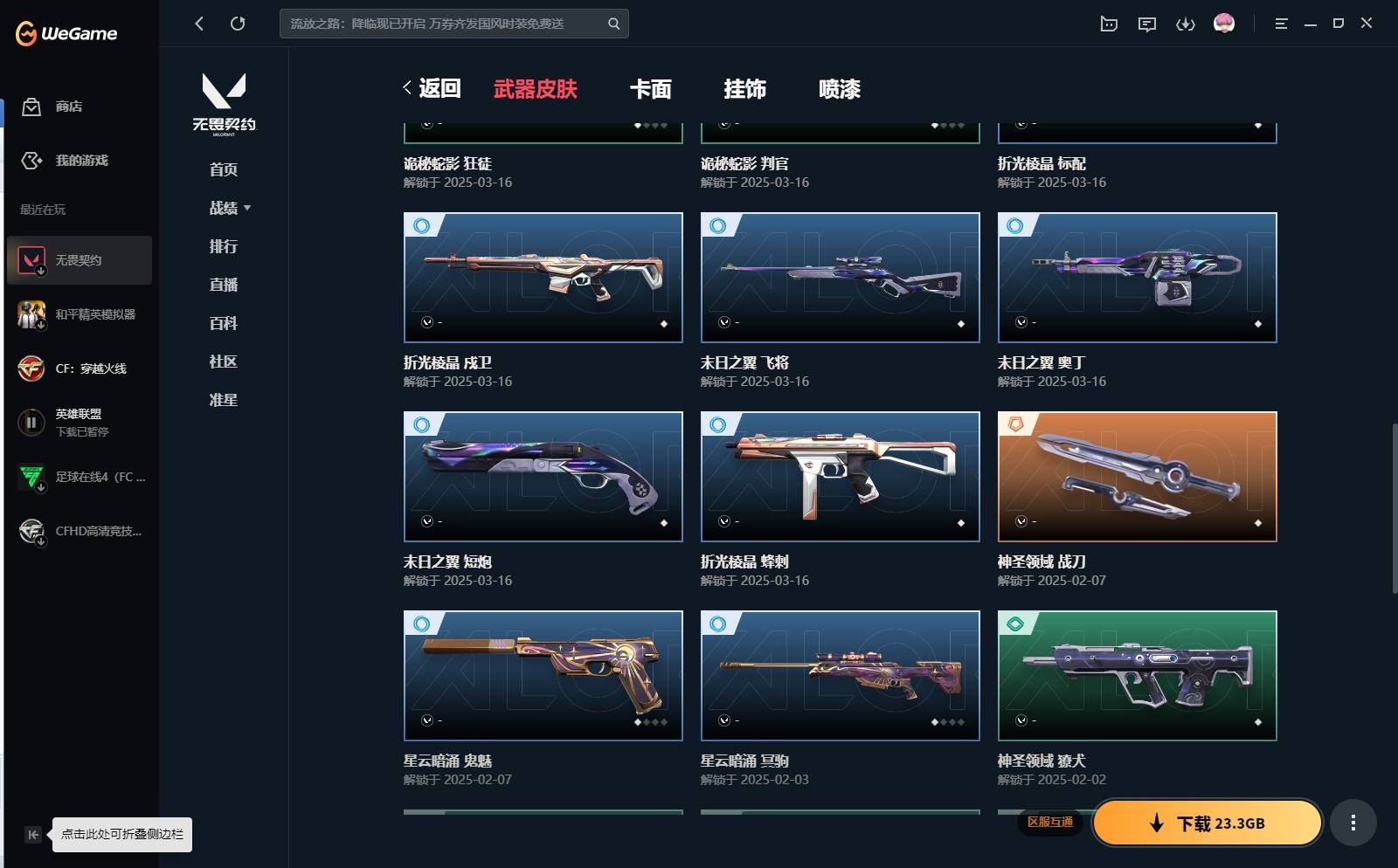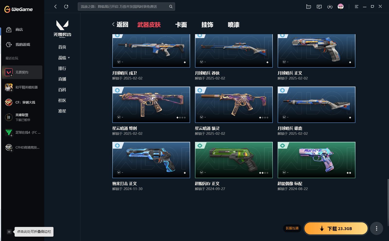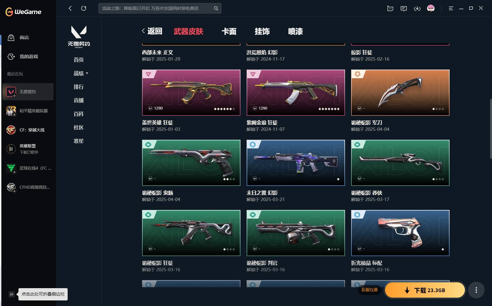XL 【实名情况】可二次实名 【排位情况】可排位 【账号状态】无封号 【区服】QQ 【游戏等级】Lv150 【游戏段位】未定级 【剩余V点】19 【剩余R点】30 【皮肤资产价值】19960 【使用R点】630 【英雄数量】27 【皮肤数量】39 【卡面数量】79 【喷漆数量】60 【挂件数量】52 【拥有套装】西部未来套装(西部未来-幻影西部未来-奥丁西部未来-飞将西部未来-正义未来开拓者) 【拥有近战武器】诡秘蛇影-军刀,澄湖潋滟,神圣领域-战刀,威龙之刃, 【拥有步枪】洪荒怒焰-幻影,盖世英雄-狂徒,紫阙金琅-狂徒,掠影-狂徒,诡秘蛇影-狂徒,神圣领域-獠犬,神圣领域-幻影,末日之翼-幻影,折光棱晶-戍卫,月球哨兵-戍卫, 【拥有狙击枪】诡秘蛇影-莽侠,末日之翼-飞将,星云暗涌-冥驹,月球哨兵-莽侠, 【拥有机枪】神圣领域-战神,末日之翼-奥丁, 【拥有冲锋枪】折光棱晶-蜂刺,星云暗涌-蜂刺,星云暗涌-骇灵, 【拥有霰弹枪】诡秘蛇影-判官,月球哨兵-雄鹿, 【拥有手枪】诡秘蛇影-鬼魅,神圣领域-狂怒,超限闪存-正义,超能偶像-标配,折光棱晶-标配,末日之翼-短炮,星云暗涌-鬼魅,月球哨兵-正义,纳米打击-正义, 【稀有挂件】第九季白银挂饰,终章猫猫木乃伊挂饰,无畏契约GO第一卷芮娜挂饰,无畏契约GO第一卷零挂饰,无畏契约GO第一卷贤者挂饰,熔岩灯挂饰,糖葫芦挂饰,迷你浓缩挂饰,袖珍捷风挂饰, 【卡面信息】西部未来卡面,先驱者卡面,我眼中的世界卡面,双城之战拥抱卡面,无畏