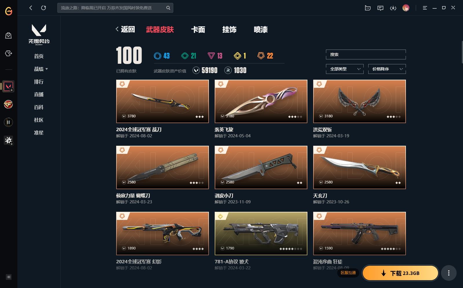 XL 【实名情况】可二次实名 【排位情况】可排位 【账号状态】无封号 【区服】QQ 【游戏等级】Lv101 【游戏段位】铂金I 【剩余V点】71 【剩余R点】70 【皮肤资产价值】59190 【使用R点】1030 【英雄数量】27 【皮肤数量】100 【卡面数量】102 【喷漆数量】99 【挂件数量】78 【拥有套装】千灵华绽套装(千灵华绽-幻影千灵华绽-冥驹千灵华绽-判官千灵华绽正义落英飞旋)洪荒怒焰套装(洪荒怒焰-幻影洪荒怒焰-狂徒洪荒怒焰-骇灵洪荒怒焰-短炮洪荒双斩)2024全球冠军赛套装(2024全球冠军赛-幻影2024全球冠军赛-战刀)天界神兵套装(天界神兵-戍卫天界神兵-飞将天界神兵-蜂刺天界神兵-鬼魅天玄刀)异形猎人套装(异形猎人-幻影异形猎人-奥丁异形猎人-雄鹿异形猎人-狂怒剥皮小刀) 【拥有近战武器】超能偶像-应援棒,沙尘幻旅-匕首,侦察力量-蝴蝶刀, 【拥有步枪】混沌序曲-狂徒,机动狂飙-狂徒,归零者-狂徒,781-A协议-獠犬,紫阙金琅-狂徒,盖亚的复仇-狂徒,星际猎兵-幻影,超能偶像-戍卫,超能偶像-狂徒,珍珠棘贝-戍卫,沙尘幻旅-狂徒,红鳞松叶-幻影,弧光异彩-狂徒,巨神铁甲-狂徒,瑰梦艺语-狂徒,光环序列-戍卫,逆冲蛮牛-獠犬,聚合之力-幻影,采蜜小蜂队-獠犬,战术熊与伙伴们-戍卫,复古浪潮-獠犬,萌彩剪影-戍卫,胡桃狂想-獠犬,彩梦之城-戍卫, 【拥有狙击枪】归零者-冥驹,星际猎兵-飞将,沙尘幻旅-飞将,聚合之力-飞将,深海水族-莽侠,复古浪潮-冥驹,胡桃狂想-冥驹, 【拥有机枪】紫阙金琅//2.0-奥丁,光环序列-战神,采蜜小蜂队-战神,深海水族-战神,萌彩剪影-战神,信手涂鸦-奥丁, 【拥有冲锋枪】流星兵团-骇灵,珍珠棘贝-骇灵,沙尘幻旅-骇灵,弧光异彩-蜂刺,瑰梦艺语-骇灵,聚合之力-蜂刺,纤云弄巧-蜂刺,深海水族-蜂刺,胡桃狂想-蜂刺,信手涂鸦-骇灵, 【拥有霰弹枪】星际猎兵-判官,超能偶像-判官,瑰梦艺语-雄鹿,采蜜小蜂队-判官,复古浪潮-雄鹿,萌彩剪影-判官,彩梦之城-雄鹿, 【拥有手枪】VCT-x-LEV-标配,紫阙金琅-标配,冰点凝冻-标配,诡秘蛇影-鬼魅,荒土机兵-标配,超能偶像-标配,珍珠棘贝-狂怒,沙尘幻旅-正义,瑰梦艺语-鬼魅,光环序列-狂怒,逆冲蛮牛-狂怒,聚合之力-狂怒,采蜜小蜂队-鬼魅,战术熊与伙伴们-狂怒,纤云弄巧-短炮,战术熊与伙伴们-标配,深海水族-短炮,萌彩剪影-狂怒,胡桃狂想-鬼魅,信手涂鸦-鬼魅,彩梦之城-标配, 【稀有挂件】V25第三幕超凡挂饰,第九季超凡挂饰,糖葫芦挂饰,2024全球冠军赛挂饰,袖珍捷风挂饰,超能偶像挂饰,迷你浓缩挂饰,采蜜小蜂队挂饰,第八季钻石挂饰,章鱼烧先生挂饰,云开见日挂饰,传世莲华挂饰,第七季超凡挂饰,幸运中国结挂饰, 【卡面信息】超能偶像卡面,千灵华绽卡面,命运之手女皇卡面,VCTxLEV卡面,Luie卡面,无畏