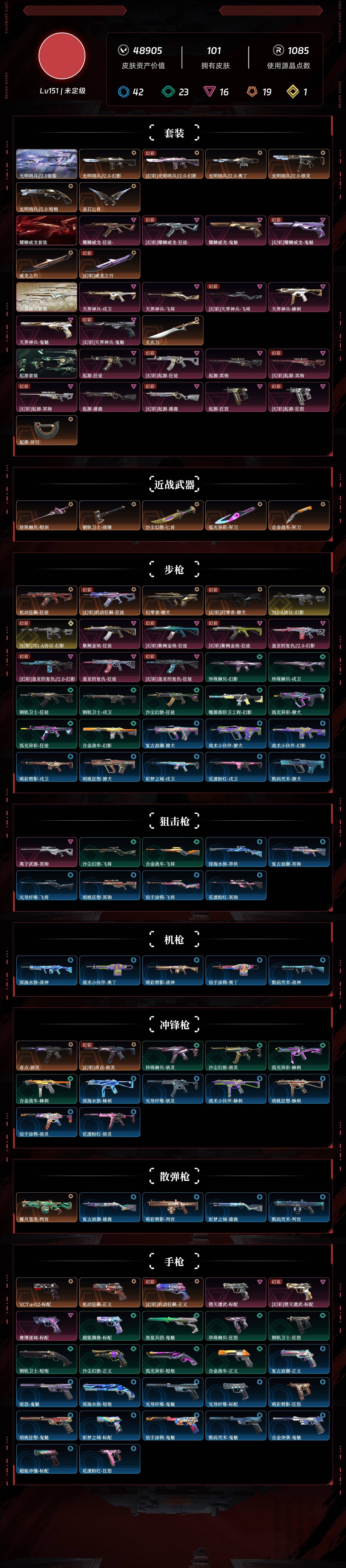 [12011395]r8028,有二次,剩余点券:99 lv151 ,皮肤总价值48905,未定级,总皮肤101,刀皮9呛皮92终极1传奇10卓越16,套装4传奇1卓越3,耀鳞威龙套装,具体详情看图