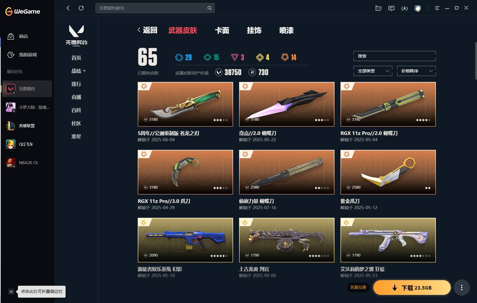 XL 【实名情况】可二次实名 【排位情况】可排位 【账号状态】无封号 【区服】QQ 【游戏等级】Lv81 【游戏段位】黄金I 【剩余V点】359 【剩余R点】15 【皮肤资产价值】38750 【使用R点】730 【英雄数量】22 【皮肤数量】65 【卡面数量】81 【喷漆数量】73 【挂件数量】52 【拥有套装】 【拥有近战武器】阿特拉斯指挥部-甩棍,5周年//公测重制版-苍龙之刃,日耀风暴-遗器,RGX-11z-Pro//2.0-蝴蝶刀,奇点//2.0-蝴蝶刀,紫金爪刀,RGX-11z-Pro//3.0-爪刀,侦察力量-蝴蝶刀, 【拥有步枪】光荣异象-狂徒,RGX-11z-Pro-狂徒,洪荒怒焰-狂徒,破败军械-戍卫,艾沃莉的梦之翼-狂徒,源能者娱乐系统-幻影,紫阙金琅-狂徒,盖亚的复仇-狂徒,星际猎兵-幻影,阿特拉斯指挥部-狂徒,日耀风暴-幻影,诡秘蛇影-狂徒,瑰梦艺语-狂徒,光环序列-戍卫,悠闲猫生-幻影,太空穿梭-戍卫,悠闲猫生-獠犬,幻语魔咒-獠犬,甜蜜战术-戍卫,折光棱晶-戍卫, 【拥有狙击枪】偃月苍龙-冥驹,星际猎兵-飞将,阿特拉斯指挥部-莽侠,诡秘蛇影-莽侠,悠闲猫生-飞将,甜蜜战术-冥驹,幻语魔咒-飞将,末日之翼-飞将, 【拥有机枪】日耀风暴-奥丁,光环序列-战神,太空穿梭-战神,末日之翼-奥丁, 【拥有冲锋枪】艾沃莉的梦之翼-骇灵,无限竞技-骇灵,阿特拉斯指挥部-骇灵,日耀风暴-骇灵,瑰梦艺语-骇灵,折光棱晶-蜂刺, 【拥有霰弹枪】上古龙炎-判官,星际猎兵-判官,诡秘蛇影-判官,瑰梦艺语-雄鹿,太空穿梭-判官,甜蜜战术-判官,幻语魔咒-雄鹿, 【拥有手枪】机动狂飙-正义,紫阙金琅-标配,阿特拉斯指挥部-标配,日耀风暴-正义,光环序列-狂怒,瑰梦艺语-鬼魅,太空穿梭-正义,悠闲猫生-短炮,甜蜜战术-鬼魅,幻语魔咒-狂怒,折光棱晶-标配,末日之翼-短炮, 【稀有挂件】无畏契约GO第一卷奇乐挂饰,无畏契约GO第一卷捷风挂饰,V25第三幕青铜挂饰,薰衣草之心挂饰, 【卡面信息】势不可挡捷风卡面,我眼中的世界卡面,无