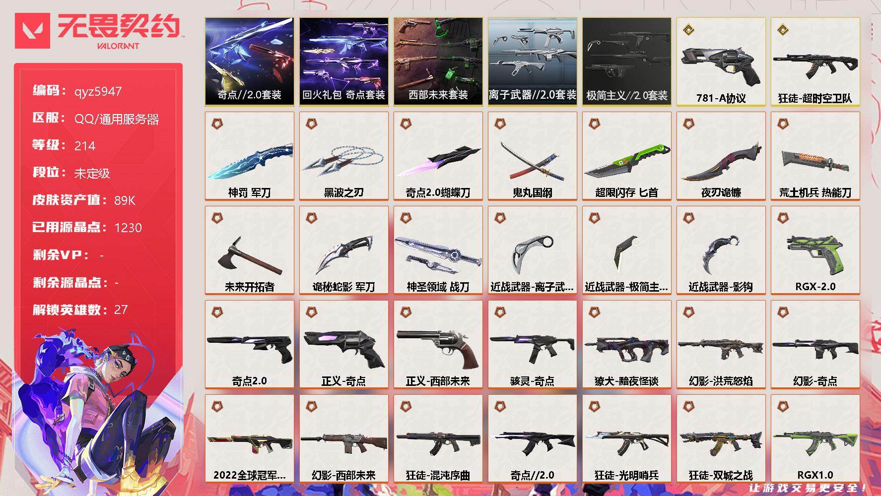 奇点-西部-离子20一套-22m4-双城ak-黑波-qyz5947亮点皮肤:-幻影-2022全球冠军赛-套装:-奇点套装奇点//20套装西部未来离子武器20-近战武器皮肤:-军刀-神罚黑波之刃夜刃诡镰匕首-超限闪存蝴蝶刀-奇点//20荒土机兵热能刀鬼丸国纲神圣领域-战刀未来开拓者离子武器20-爪刀诡秘蛇影极简主义20-爪刀影钩-步呛皮肤:-幻影-奇点狂徒-盖亚的复仇幻影-侦察力量戍卫-天界神兵幻影-洪荒怒焰幻影-般若假面狂徒-混沌序曲獠犬-黯夜怪谈狂徒-光明哨兵狂徒-奇点//20狂徒-掠影狂徒-双城之战幻影-西部未来戍卫-奇幻朋克20狂徒-离子武器20狂徒-rgx-11z-pro狂徒-光荣异象狂徒-超时空卫队-佩呛皮肤:-正义-奇点正义-781-a协议鬼魅-奇点//20标配-rgx-11z-pro//20正义-西部未来狂怒-离子武器20-狙击呛皮肤:-冥驹-千灵华绽飞将-黯夜怪谈飞将-西部未来莽侠-神中神罚-冲锋呛皮肤:-骇灵-奇点骇灵-离子武器20-霰弹呛皮肤:-雄鹿-离子武器-机呛皮肤:-奥丁-紫阙金琅20奥丁-西部未来战神-离子武器20-亮点:-【qyz5947】【套装】:西部未来套装,奇点//20套装,回火礼包:奇点套装,离子武器//20套装,极简主义//20套装【英雄】:幻棱,炼狱,维斯,暮蝶,钛狐,壹决,铁臂,捷风,雷兹,幽影,不死鸟,贤者,猎枭,蝰蛇,零,芮娜,奇乐,尚勃勒,霓虹,斯凯,夜露,星礈,k/o,海神,盖可,黑梦,钢锁【近战-武器】:近战武器-影钩,近战武器-奇点//20-蝴蝶刀,近战武器-黑波之刃,近战武器-鬼丸国纲,近战武器-离子武器//20-爪刀,近战武器-极简主义//20-爪刀,近战武器-未来开拓者,近战武器-超限闪存-匕首,近战武器-荒土机兵-热能刀,近战武器-神罚-军刀,近战武器-夜刃诡镰,近战武器-诡秘蛇影-军刀,近战武器-神圣领域-战刀【狂徒】:狂徒-超时空卫队,狂徒-光明哨兵,狂徒-混沌序曲,狂徒-奇点//20,狂徒-双城之战,狂徒-rgx-11z-pro,狂徒-光荣异象,狂徒-掠影,狂徒-盖亚的复仇,狂徒-离子武器//20,狂徒-荒土机兵,狂徒-巨神铁甲,狂徒-诡秘蛇影,狂徒-极简主义//20【幻影】:幻影-2022全球冠军赛,幻影-洪荒怒焰