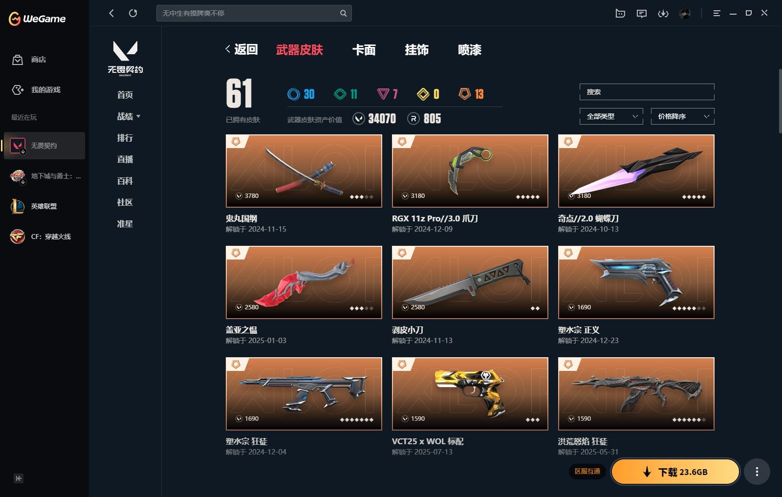 XL 【实名情况】可二次实名 【排位情况】可排位 【账号状态】无封号 【区服】QQ 【游戏等级】Lv88 【游戏段位】白银III 【剩余V点】6 【剩余R点】35 【皮肤资产价值】34070 【使用R点】805 【英雄数量】17 【皮肤数量】61 【卡面数量】77 【喷漆数量】70 【挂件数量】53 【拥有套装】 【拥有近战武器】神圣领域-战刀,荒土机兵-热能刀,奇点//2.0-蝴蝶刀,鬼丸国纲,RGX-11z-Pro//3.0-爪刀,剥皮小刀,盖亚之愠, 【拥有步枪】洪荒怒焰-狂徒,塑水宗-狂徒,紫阙金琅-狂徒,盖亚的复仇-狂徒,侦察力量-幻影,掠影-狂徒,日耀风暴-幻影,神圣领域-獠犬,神圣领域-幻影,荒土机兵-狂徒,幻语魔咒-獠犬,甜蜜战术-戍卫,月球哨兵-戍卫,纳米打击-幻影,逆冲蛮牛-獠犬,逆冲蛮牛-戍卫, 【拥有狙击枪】堕天遗武-冥驹,荒土机兵-冥驹,幻语魔咒-飞将,星云暗涌-冥驹,月球哨兵-莽侠,模拟赫兹-冥驹, 【拥有机枪】日耀风暴-奥丁,神圣领域-战神,纳米打击-奥丁,浮光跃金-战神, 【拥有冲锋枪】荒土机兵-骇灵,超限闪存-蜂刺,星云暗涌-蜂刺,星云暗涌-骇灵,浮光跃金-骇灵, 【拥有霰弹枪】幻语魔咒-雄鹿,甜蜜战术-判官,月球哨兵-雄鹿,逆冲蛮牛-雄鹿,纳米打击-判官,模拟赫兹-雄鹿, 【拥有手枪】VCT25-x-WOL-标配,西部未来-正义,光明哨兵-正义,塑水宗-正义,天界神兵-鬼魅,离子武器-正义,神圣领域-狂怒,荒土机兵-标配,甜蜜战术-鬼魅,幻语魔咒-狂怒,游戏结束-正义,月球哨兵-正义,星云暗涌-鬼魅,纳米打击-正义,逆冲蛮牛-狂怒,浮光跃金-标配,模拟赫兹-鬼魅, 【稀有挂件】V25第三幕铂金挂饰,第九季黄金挂饰,无畏契约GO第一卷贤者挂饰,终章猫猫木乃伊挂饰,猫猫木乃伊挂饰, 【卡面信息】狼人猎手卡面,分崩离析卡面,双城之战拥抱卡面,无畏