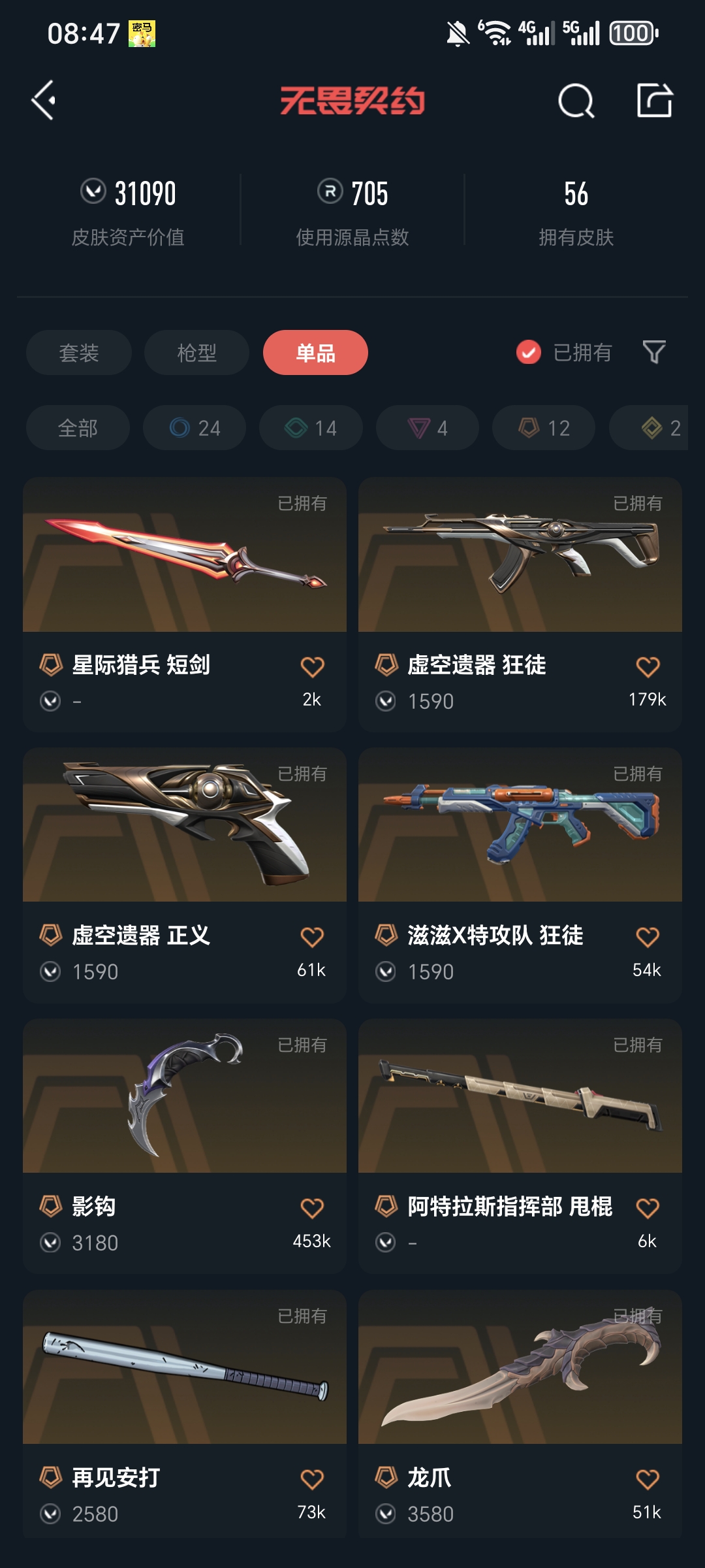 游戏等级:84-段位:白银-皮肤价值31090-已用源晶点数705-英雄18-武器皮肤56 短剑-星际猎兵 虚空遗器 狂徒 虚空遗器-正义 滋滋x特工队-狂徒 影钩 甩棍-阿特拉斯指挥部 再见安打 龙爪 苍龙之刃-5周年//公测重制版 日耀风暴 遗器 光荣异象-狂徒 埃芒迪尔大剑 超时空卫队-狂徒 幻影-781-a协议 狂徒-紫阙金琅 冥驹-堕天遗武 般若假面//2.0-狂徒 狂徒-日冕雄狮 掌瓦