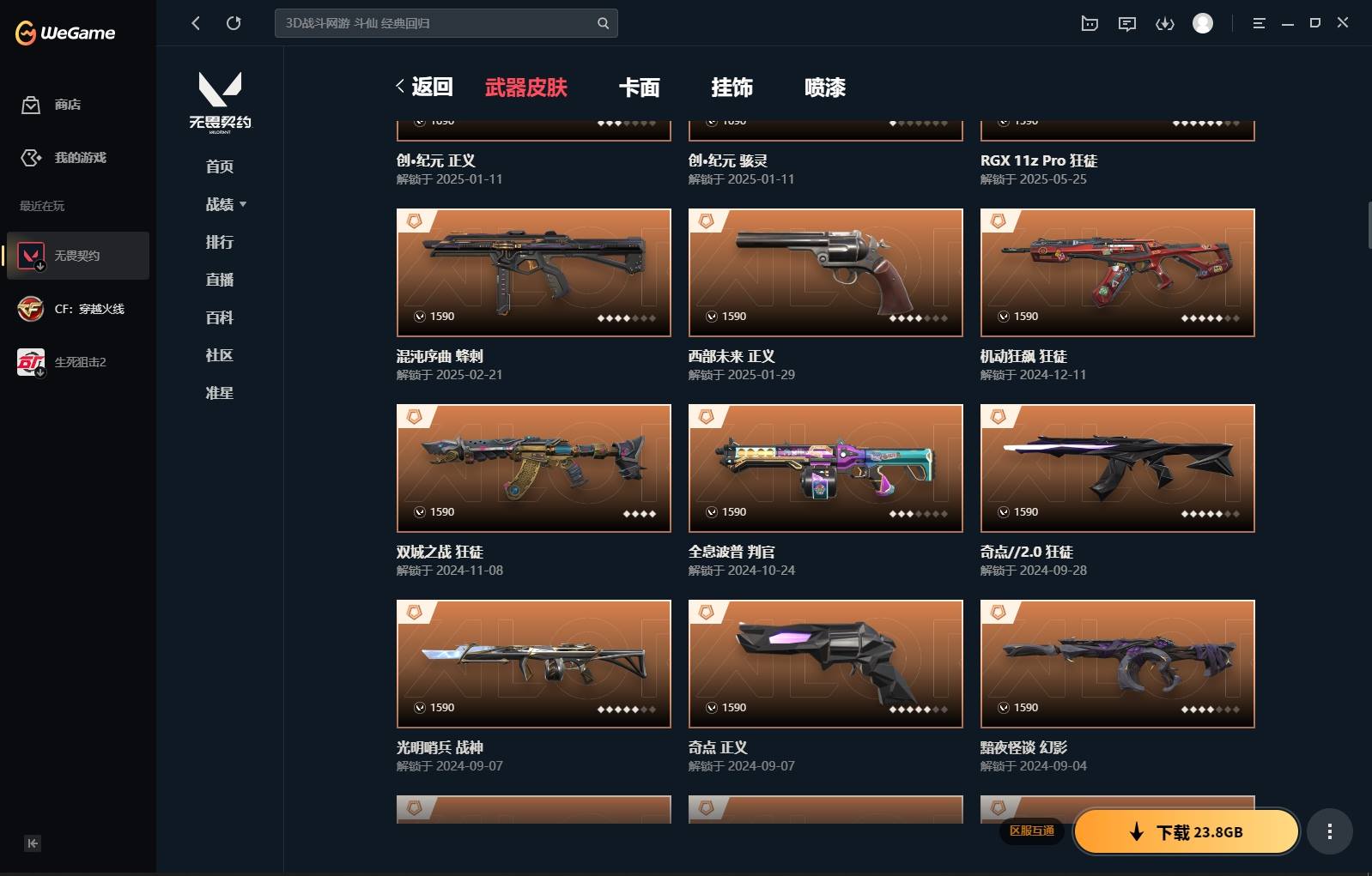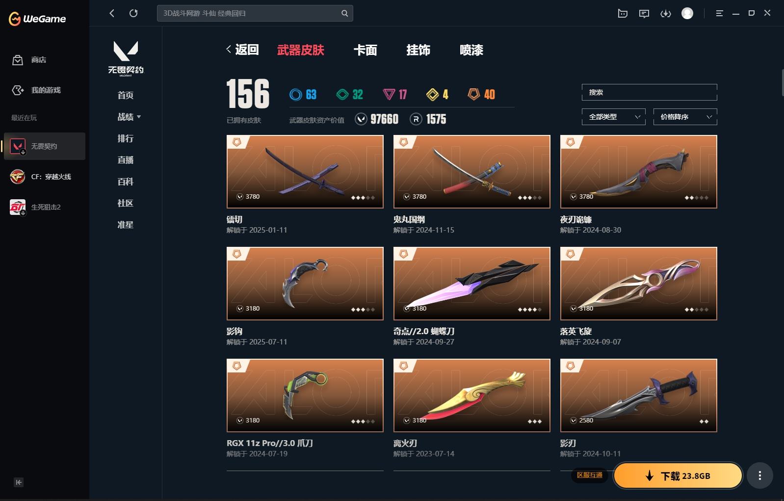 XL 【实名情况】可二次实名 【排位情况】可排位 【账号状态】无封号 【区服】QQ 【游戏等级】Lv183 【游戏段位】神话I 【剩余V点】293 【剩余R点】55 【皮肤资产价值】97660 【使用R点】1575 【英雄数量】27 【皮肤数量】156 【卡面数量】163 【喷漆数量】167 【挂件数量】123 【拥有套装】掠影//2.0套装(掠影//2.0-幻影掠影//2.0-奥丁掠影//2.0-骇灵掠影//2.0-鬼魅影钩)创纪元套装(创·纪元-狂徒创·纪元-莽侠创·纪元-骇灵创·纪元-正义镭切)般若假面2.0套装(般若假面//2.0-狂徒般若假面//2.0-獠犬般若假面//2.0-战神般若假面//2.0-狂怒鬼丸国纲)RGX-11z-Pro//3.0套装(RGX-11z-Pro//3.0-莽侠RGX-11z-Pro//3.0-正义RGX-11z-Pro//3.0-爪刀)掠影套装(掠影-狂徒掠影-冥驹掠影-戍卫掠影-正义影刃) 【拥有近战武器】阿特拉斯指挥部-甩棍,日耀风暴-遗器,诡秘蛇影-军刀,神圣领域-战刀,荒土机兵-热能刀,超限闪存-匕首,超能偶像-应援棒,离火刃,落英飞旋,夜刃诡镰,奇点//2.0-蝴蝶刀, 【拥有步枪】RGX-11z-Pro-狂徒,混沌序曲-狂徒,双城之战-狂徒,千灵华绽-幻影,黯夜怪谈-幻影,全息波普//2.0-狂徒,奇点//2.0-狂徒,机动狂飙-狂徒,超时空卫队-狂徒,781-A协议-獠犬,艾沃莉的梦之翼-狂徒,堕天遗武-狂徒,紫阙金琅-狂徒,星际猎兵-幻影,阿特拉斯指挥部-狂徒,日耀风暴-幻影,诡秘蛇影-狂徒,神圣领域-獠犬,神圣领域-幻影,荒土机兵-狂徒,超限闪存-幻影,超能偶像-戍卫,超能偶像-狂徒,光环序列-戍卫,悠闲猫生-幻影,太空穿梭-戍卫,悠闲猫生-獠犬,幻语魔咒-獠犬,甜蜜战术-戍卫,末日之翼-幻影,折光棱晶-戍卫,月球哨兵-戍卫,纳米打击-幻影,逆冲蛮牛-戍卫,逆冲蛮牛-獠犬,模拟赫兹-獠犬,浮光跃金-戍卫,聚合之力-幻影,采蜜小蜂队-獠犬, 【拥有狙击枪】千灵华绽-冥驹,离子武器-冥驹,阿特拉斯指挥部-莽侠,诡秘蛇影-莽侠,荒土机兵-冥驹,超限闪存-莽侠,悠闲猫生-飞将,甜蜜战术-冥驹,幻语魔咒-飞将,末日之翼-飞将,星云暗涌-冥驹,月球哨兵-莽侠,模拟赫兹-冥驹,聚合之力-飞将, 【拥有机枪】光明哨兵-战神,光明哨兵//2.0-奥丁,奇点-战神,日耀风暴-奥丁,神圣领域-战神,狂翼掠空-奥丁,光环序列-战神,太空穿梭-战神,末日之翼-奥丁,纳米打击-奥丁,浮光跃金-战神,采蜜小蜂队-战神, 【拥有冲锋枪】混沌序曲-蜂刺,艾沃莉的梦之翼-骇灵,阿特拉斯指挥部-骇灵,日耀风暴-骇灵,荒土机兵-骇灵,超限闪存-蜂刺,瑰梦艺语-骇灵,折光棱晶-蜂刺,星云暗涌-骇灵,星云暗涌-蜂刺,浮光跃金-骇灵,聚合之力-蜂刺, 【拥有霰弹枪】全息波普-判官,起源-雄鹿,星际猎兵-判官,诡秘蛇影-判官,狂翼掠空-雄鹿,超能偶像-判官,瑰梦艺语-雄鹿,太空穿梭-判官,幻语魔咒-雄鹿,甜蜜战术-判官,月球哨兵-雄鹿,逆冲蛮牛-雄鹿,纳米打击-判官,模拟赫兹-雄鹿,采蜜小蜂队-判官, 【拥有手枪】VCT-x-BLG-标配,西部未来-正义,归零者-短炮,奇点-正义,盖亚的复仇-鬼魅,阿特拉斯指挥部-标配,日耀风暴-正义,诡秘蛇影-鬼魅,神圣领域-狂怒,荒土机兵-标配,超限闪存-正义,超能偶像-标配,光环序列-狂怒,瑰梦艺语-鬼魅,太空穿梭-正义,悠闲猫生-短炮,扑棱扑棱-鬼魅,甜蜜战术-鬼魅,幻语魔咒-狂怒,末日之翼-短炮,折光棱晶-标配,火线狂怒,星云暗涌-鬼魅,月球哨兵-正义,纳米打击-正义,逆冲蛮牛-狂怒,模拟赫兹-鬼魅,浮光跃金-标配,聚合之力-狂怒,采蜜小蜂队-鬼魅, 【稀有挂件】无畏契约GO第一卷捷风挂饰,无畏契约GO第一卷奇乐挂饰,V25第三幕神话挂饰,金属蝶翼挂饰,薰衣草之心挂饰,第九季钻石挂饰,终章猫猫木乃伊挂饰,猫猫木乃伊挂饰,无畏契约GO第一卷芮娜挂饰,无畏契约GO第一卷零挂饰,拳击战术熊挂饰,熔岩灯挂饰,彩虹魔力小白马挂饰,袖珍捷风挂饰,糖葫芦挂饰,超能偶像挂饰,迷你浓缩挂饰,采蜜小蜂队挂饰,好运福爪挂饰,幸运中国结挂饰, 【卡面信息】分崩离析卡面,势不可挡幽影卡面,双城之战拥抱卡面,双城之战姐妹卡面,RGX11zPro30卡面,超能偶像卡面,离火刃凰卡面,离火刃凤卡面,无畏