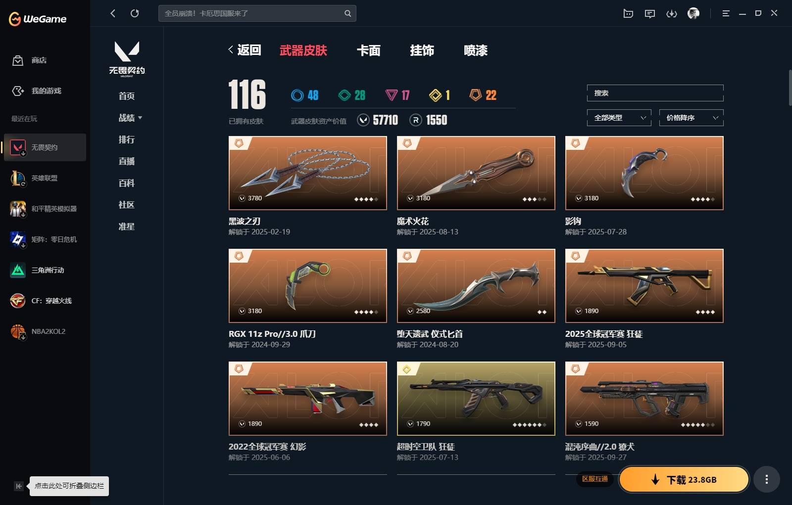XL 【实名情况】可二次实名 【排位情况】可排位 【账号状态】无封号 【区服】QQ 【游戏等级】Lv287 【游戏段位】铂金II 【剩余V点】 【剩余R点】 【皮肤资产价值】57710 【使用R点】1550 【英雄数量】27 【皮肤数量】116 【卡面数量】171 【喷漆数量】132 【挂件数量】115 【拥有套装】掠影//2.0套装(掠影//2.0-幻影掠影//2.0-奥丁掠影//2.0-骇灵掠影//2.0-鬼魅影钩) 【拥有近战武器】阿特拉斯指挥部-甩棍,日耀风暴-遗器,诡秘蛇影-军刀,神圣领域-战刀,荒土机兵-热能刀,超限闪存-匕首,堕天遗武-仪式匕首,黑波之刃,RGX-11z-Pro//3.0-爪刀,魔术火花, 【拥有步枪】2022全球冠军赛-幻影,RGX-11z-Pro-狂徒,混沌序曲//2.0-獠犬,虚空遗器-狂徒,混沌序曲-狂徒,洪荒怒焰-狂徒,2025全球冠军赛-狂徒,偃月苍龙-狂徒,超时空卫队-狂徒,离子武器//2.0-狂徒,堕天遗武-狂徒,紫阙金琅-狂徒,盖亚的复仇-戍卫,盖亚的复仇-狂徒,侦察力量-幻影,耀鳞威龙-狂徒-,般若假面-幻影,阿特拉斯指挥部-狂徒,日耀风暴-幻影,诡秘蛇影-狂徒,神圣领域-獠犬,神圣领域-幻影,荒土机兵-狂徒,超限闪存-幻影,悠闲猫生-獠犬,太空穿梭-戍卫,悠闲猫生-幻影,幻语魔咒-獠犬,甜蜜战术-戍卫,末日之翼-幻影,折光棱晶-戍卫,月球哨兵-戍卫,纳米打击-幻影,逆冲蛮牛-戍卫,逆冲蛮牛-獠犬,模拟赫兹-獠犬,浮光跃金-戍卫, 【拥有狙击枪】西部未来-飞将,堕天遗武-冥驹,起源-冥驹,阿特拉斯指挥部-莽侠,诡秘蛇影-莽侠,荒土机兵-冥驹,超限闪存-莽侠,悠闲猫生-飞将,甜蜜战术-冥驹,幻语魔咒-飞将,末日之翼-飞将,星云暗涌-冥驹,月球哨兵-莽侠,模拟赫兹-冥驹, 【拥有机枪】日耀风暴-奥丁,神圣领域-战神,太空穿梭-战神,末日之翼-奥丁,纳米打击-奥丁,浮光跃金-战神, 【拥有冲锋枪】无限竞技-骇灵,阿特拉斯指挥部-骇灵,日耀风暴-骇灵,荒土机兵-骇灵,超限闪存-蜂刺,折光棱晶-蜂刺,星云暗涌-骇灵,星云暗涌-蜂刺,浮光跃金-骇灵, 【拥有霰弹枪】起源-雄鹿,诡秘蛇影-判官,太空穿梭-判官,幻语魔咒-雄鹿,甜蜜战术-判官,月球哨兵-雄鹿,逆冲蛮牛-雄鹿,纳米打击-判官,模拟赫兹-雄鹿, 【拥有手枪】VCT25-x-LEV-标配,奇点-正义,天界神兵-鬼魅,离子武器-正义,星际猎兵-标配,阿特拉斯指挥部-标配,日耀风暴-正义,诡秘蛇影-鬼魅,神圣领域-狂怒,荒土机兵-标配,超限闪存-正义,超能偶像-标配,流星兵团-鬼魅,太空穿梭-正义,悠闲猫生-短炮,甜蜜战术-鬼魅,幻语魔咒-狂怒,末日之翼-短炮,折光棱晶-标配,星云暗涌-鬼魅,月球哨兵-正义,纳米打击-正义,逆冲蛮牛-狂怒,浮光跃金-标配,模拟赫兹-鬼魅,光导纤维-鬼魅, 【稀有挂件】深度分割挂饰,超能偶像挂饰,V25第三幕黄金挂饰,好运喵挂饰,第九季白银挂饰,春节吉祥结挂饰,终章猫猫木乃伊挂饰,猫猫木乃伊挂饰,拳击战术熊挂饰,无畏契约GO第一卷芮娜挂饰,无畏契约GO第一卷零挂饰,熔岩灯挂饰,糖葫芦挂饰,袖珍捷风挂饰,迷你浓缩挂饰,第八季白银挂饰,终章迷你机甲挂饰,战术河童挂饰,瞄这里挂饰,好运福爪挂饰, 【卡面信息】势不可挡捷风卡面,情人节不死鸟卡面,许愿星砂卡面,分崩离析卡面,我眼中的世界卡面,势不可挡芮娜卡面,双城之战拥抱卡面,势不可挡幽影卡面,无畏契约吉祥物卡面,月光灵狐卡面,无畏