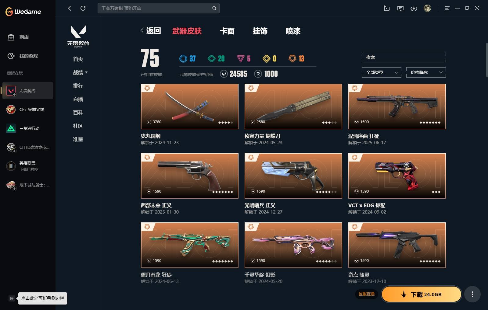 XL账号类型 QQ 实名情况 可二次实名 段位 白银 等级区间 192 皮肤资产价值 24585 刀皮数量 6 枪皮数量 69 近战武器 近战武器-合金战车军刀、近战武器-弧光异彩军刀、近战武器-侦察力量蝴蝶刀、近战武器-沙尘幻旅匕首、近战武器-流星兵团短剑、近战武器-鬼丸国纲 鬼魅 鬼魅-数码咒术、鬼魅-信手涂鸦、鬼魅-天界神兵、鬼魅-胡桃狂想 正义 正义-传奇制造、正义-合金战车、正义-沙尘幻旅、正义-光明哨兵、正义-西部未来、正义-日耀风暴 标配 标配-超能冲撞、标配-艺高胆大、标配-彩梦之城、标配-星际猎兵、标配-阿特拉斯指挥部 短炮 短炮-弧光异彩 狂怒 狂怒-花漾粉红、狂怒-萌彩剪影 2024VCT手枪 标配-VCTxEDG 狂徒 狂徒-紫阙金琅、狂徒-盖亚的复仇、狂徒-偃月苍龙、狂徒-弧光异彩、狂徒-沙尘幻旅、狂徒-混沌序曲 幻影 幻影-神罚、幻影-侦察力量、幻影-合金战车、幻影-噬源兽防卫工程、幻影-千灵华绽 戍卫 戍卫-花漾粉红、戍卫-彩梦之城、戍卫-萌彩剪影 獠犬 獠犬-数码咒术、獠犬-胡桃狂想、獠犬-弧光异彩 蜂刺 蜂刺-胡桃狂想、蜂刺-合金战车、蜂刺-弧光异彩 骇灵 骇灵-花漾粉红、骇灵-奇点、骇灵-信手涂鸦、骇灵-沙尘幻旅 判官 判官-数码咒术、判官-萌彩剪影 雄鹿 雄鹿-彩梦之城 飞将 飞将-信手涂鸦、飞将-合金战车、飞将-沙尘幻旅 冥驹 冥驹-花漾粉红、冥驹-起源、冥驹-胡桃狂想 奥丁 奥丁-信手涂鸦 战神 战神-数码咒术、战神-萌彩剪影 热门卡面 VCTCN首冠卡面、双城之战拥抱卡面、势不可挡零卡面、势不可挡KO卡面 热门挂饰 2021冠军巡回赛花火挂饰、袖珍捷风挂饰、神中神挂饰、双城之战魄罗挂饰、双城之战小蛋糕挂饰、幸运中国结挂饰、云开见日挂饰、糖葫芦挂饰、冬日絮语挂饰、针织蜜蜂挂饰、数码咒术挂饰、迷你机甲挂饰、高音谱号挂饰、VCTxEDG挂饰 热门喷漆 燥起来喷漆、皮蛋萌舞喷漆、小丑猫喷漆、目瞪口呆喷漆、看穿一切喷漆、红牌退场喷漆、撸到秃喷漆、醒狮贺春喷漆、口袋贤者喷漆、这招不行了喷漆、完美熟度喷漆、无人之境喷漆、放下武器喷漆、自我否定喷漆、继续摇滚喷漆、纸箱小猫喷漆、开心到爆炸喷漆、没有资金喷漆、别挡我的路喷漆、买装还是存钱喷漆 英雄 捷风、炼狱、不死鸟、贤者、猎枭、钢锁、暮蝶、幻棱、铁臂、雷兹、幽影、蝰蛇、零、芮娜、斯凯、夜露、KO、尚勃勒、霓虹、黑梦、盖可、壹决、维斯、钛狐、奇乐、星礈、海神无畏