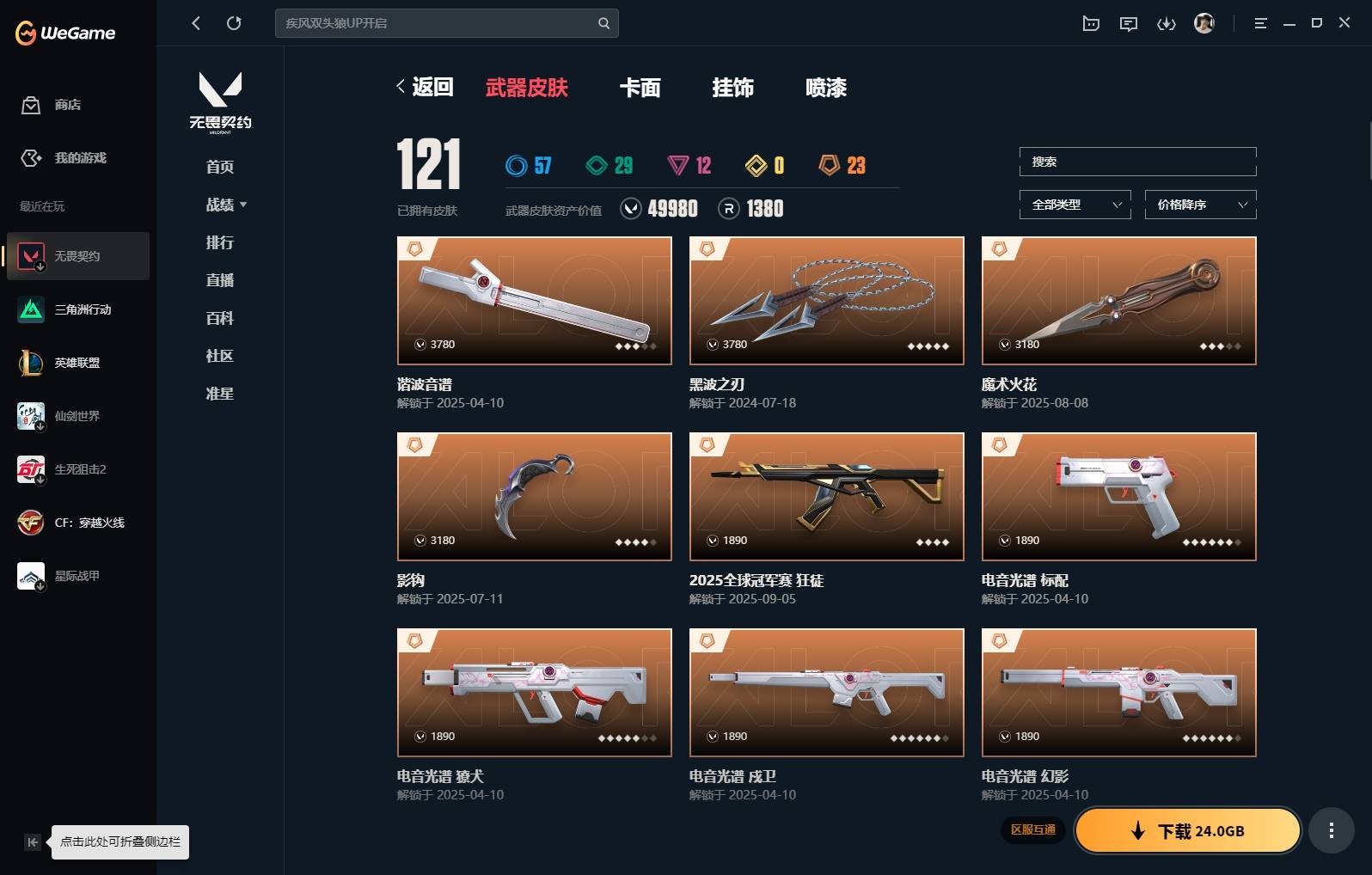 XL无畏 【实名情况】可二次实名 【排位情况】可排位 【账号状态】无封号 【区服】QQ 【游戏等级】Lv288 【游戏段位】未定级 【剩余V点】90 【剩余R点】80 【皮肤资产价值】49980 【使用R点】1380 【英雄数量】24 【皮肤数量】121 【卡面数量】160 【喷漆数量】132 【挂件数量】105 【拥有套装】掠影//2.0套装(掠影//2.0-幻影掠影//2.0-奥丁掠影//2.0-骇灵掠影//2.0-鬼魅影钩)电音光谱套装(电音光谱-幻影电音光谱-獠犬电音光谱-戍卫电音光谱-标配谐波音谱) 【拥有近战武器】星际猎兵-短剑,阿特拉斯指挥部-甩棍,诡秘蛇影-军刀,神圣领域-战刀,荒土机兵-热能刀,超限闪存-匕首,超能偶像-应援棒,黑波之刃,魔术火花, 【拥有步枪】滋滋X特攻队-狂徒,光荣异象-狂徒,全息波普//2.0-狂徒,2025全球冠军赛-狂徒,离子武器//2.0-狂徒,盖世英雄-狂徒,紫阙金琅-狂徒,盖亚的复仇-狂徒,侦察力量-幻影,掠影-狂徒,星际猎兵-幻影,阿特拉斯指挥部-狂徒,诡秘蛇影-狂徒,神圣领域-獠犬,神圣领域-幻影,荒土机兵-狂徒,超限闪存-幻影,超能偶像-戍卫,超能偶像-狂徒,瑰梦艺语-狂徒,光环序列-戍卫,悠闲猫生-獠犬,太空穿梭-戍卫,悠闲猫生-幻影,折光棱晶-戍卫,末日之翼-幻影,月球哨兵-戍卫,纳米打击-幻影,逆冲蛮牛-戍卫,逆冲蛮牛-獠犬,模拟赫兹-獠犬,浮光跃金-戍卫,聚合之力-幻影,采蜜小蜂队-獠犬, 【拥有狙击枪】归零者-冥驹,神中神罚-莽侠,星际猎兵-飞将,阿特拉斯指挥部-莽侠,诡秘蛇影-莽侠,荒土机兵-冥驹,超限闪存-莽侠,光环序列-冥驹,悠闲猫生-飞将,末日之翼-飞将,星云暗涌-冥驹,月球哨兵-莽侠,模拟赫兹-冥驹,聚合之力-飞将, 【拥有机枪】神圣领域-战神,光环序列-战神,太空穿梭-战神,末日之翼-奥丁,纳米打击-奥丁,浮光跃金-战神,采蜜小蜂队-战神, 【拥有冲锋枪】阿特拉斯指挥部-骇灵,荒土机兵-骇灵,超限闪存-蜂刺,瑰梦艺语-骇灵,折光棱晶-蜂刺,星云暗涌-蜂刺,星云暗涌-骇灵,浮光跃金-骇灵,聚合之力-蜂刺, 【拥有霰弹枪】星际猎兵-判官,诡秘蛇影-判官,超能偶像-判官,瑰梦艺语-雄鹿,太空穿梭-判官,月球哨兵-雄鹿,逆冲蛮牛-雄鹿,纳米打击-判官,模拟赫兹-雄鹿,采蜜小蜂队-判官, 【拥有手枪】VCT25-x-100T-标配,西部未来-正义,千灵华绽-正义,天界神兵-鬼魅,星际猎兵-标配,阿特拉斯指挥部-标配,日耀风暴-正义,诡秘蛇影-鬼魅,神圣领域-狂怒,荒土机兵-标配,超限闪存-正义,超能偶像-标配,光环序列-狂怒,瑰梦艺语-鬼魅,悠闲猫生-短炮,太空穿梭-正义,折光棱晶-标配,末日之翼-短炮,星云暗涌-鬼魅,月球哨兵-正义,钢铁意志-标配,纳米打击-正义,逆冲蛮牛-狂怒,传奇制造-正义,浮光跃金-标配,模拟赫兹-鬼魅,聚合之力-狂怒,采蜜小蜂队-鬼魅, 【稀有挂件】逮个正着挂饰,钢铁之轮挂饰,薰衣草之心挂饰,无畏契约GO第一卷奇乐挂饰,无畏契约GO第一卷捷风挂饰,V25第三幕超凡挂饰,第九季铂金挂饰,终章猫猫木乃伊挂饰,猫猫木乃伊挂饰,无畏契约GO第一卷芮娜挂饰,无畏契约GO第一卷零挂饰,拳击战术熊挂饰,熔岩灯挂饰,袖珍捷风挂饰,糖葫芦挂饰,超能偶像挂饰,采蜜小蜂队挂饰,迷你浓缩挂饰,好运福爪挂饰,幸运中国结挂饰, 【卡面信息】我见识过的恐惧卡面,我眼中的世界卡面,噬影者卡面,情人节捷风卡面,双城之战拥抱卡面,分崩离析卡面,势不可挡芮娜卡面,超能偶像卡面