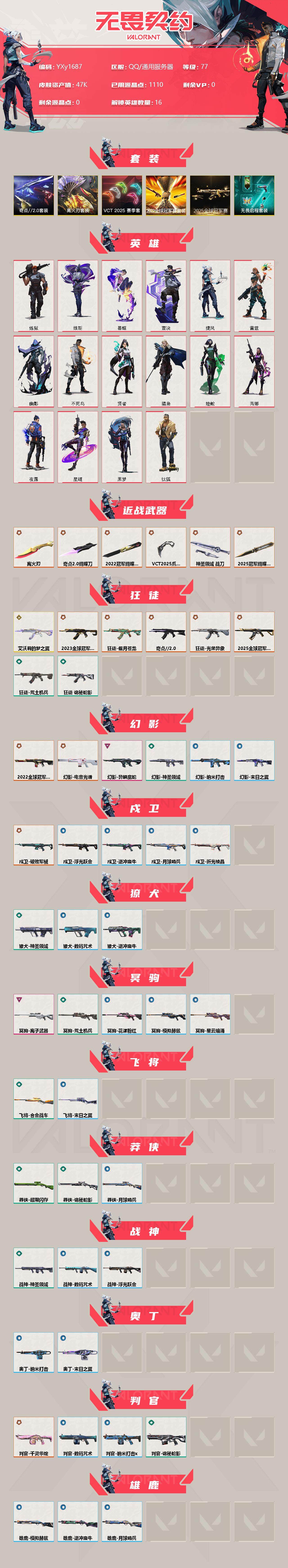 【4.7w库存离火刃.22冠军套.25冠军套.vct爪刀.23冠军ak.猫猫】y1687【可二次】 【套装】:2025全球冠军赛套装,2022全球冠军赛套装,vct 2025 赛季套装,离火刃套装,奇点//2.0套装,无畏启程套装,离火刃套装 【英雄】:炼狱,维斯,暮蝶,钛狐,壹决,捷风,雷兹,幽影,不死鸟,贤者,猎枭,蝰蛇,芮娜,夜露,星礈,黑梦 【近战 武器】:近战武器-2025全球冠