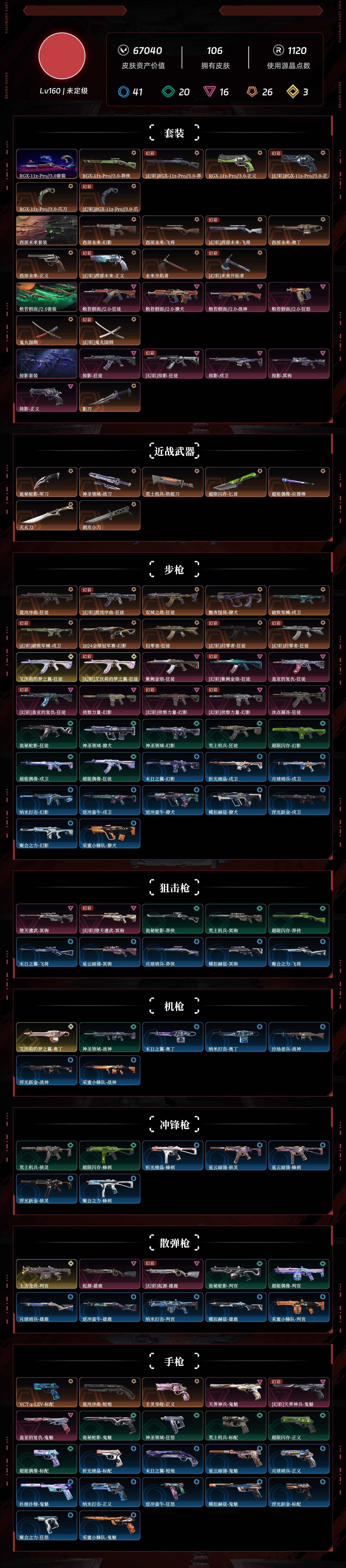 [13461717]r20309,无二次,剩余点券:53, lv160 ,皮肤总价值67040,未定级,总皮肤106,刀皮11呛皮95终极3传奇15卓越16,套装4传奇2卓越2,rgx-11z-pro//3.0套装,般若假面2.0套装,具体详情看图