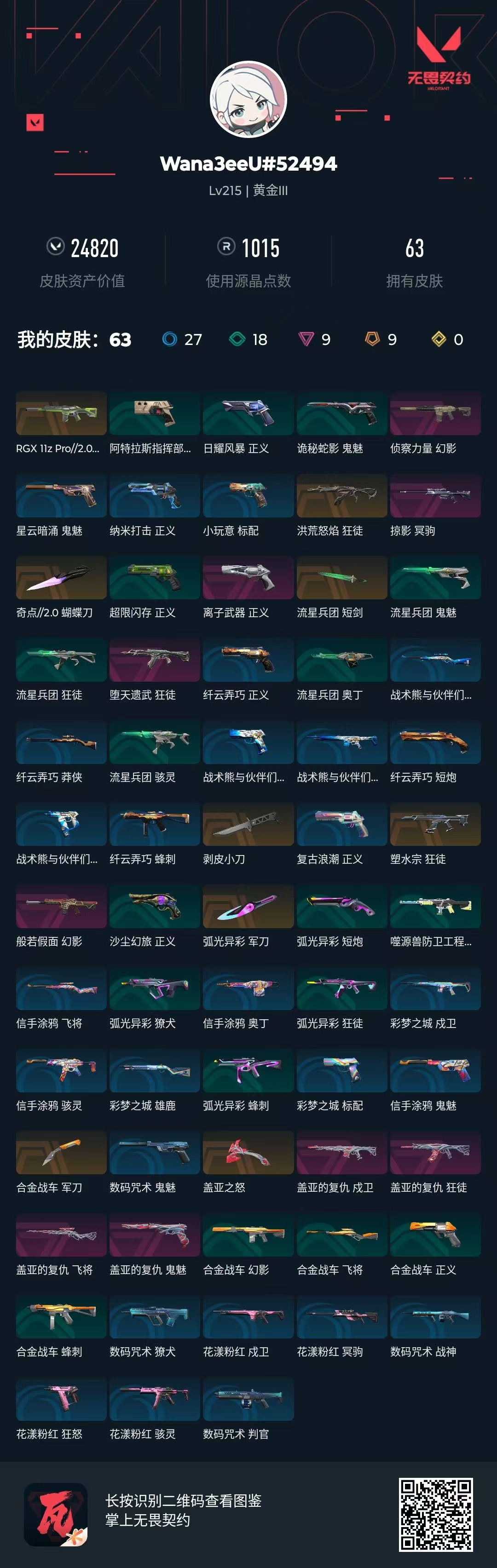 [13678621]s191831 (盖亚的复仇套装)无畏契约/215等级/黄金段位/28英雄/63皮肤/资产24820/已使用r点1015/剩余r点305/ rgx-11z-pro//2.0-幻影,洪荒怒焰-狂徒,塑水宗-狂徒,堕天遗武-狂徒,侦察力量-幻影,般若假面-幻影,盖亚的复仇-狂徒盖亚的复仇-戍卫盖亚的复仇-飞将盖亚的复仇-鬼魅盖亚之怒,流星兵团-短剑,弧光异彩-军刀,合金战车-军刀,奇点//2.0-蝴蝶刀,剥皮小刀,掠影-冥驹,离子武器-正义