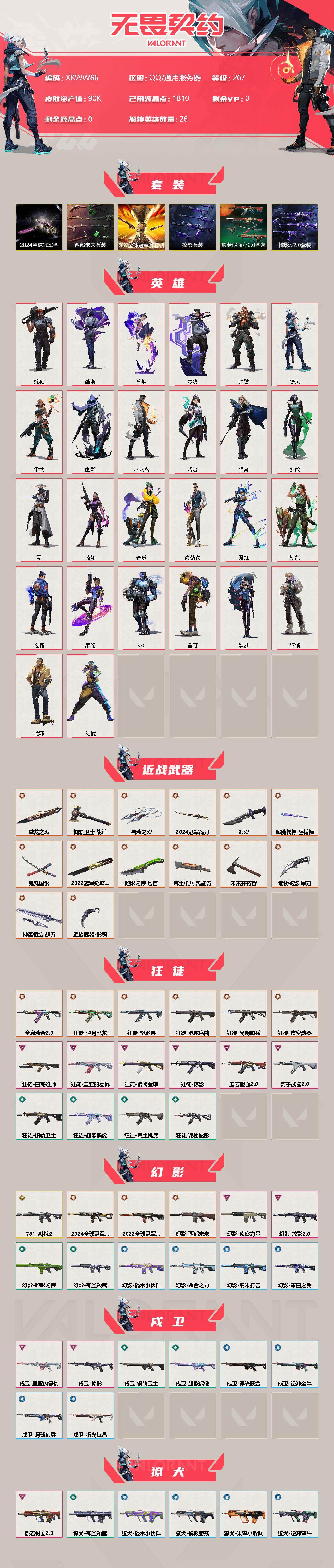 [13005294]42606-国服q-可二次-【套装】:2024全球冠军赛套装,2022全球冠军赛套装,西部未来套装,般若假面//2.0套装,掠影套装,掠影//2.0套装 【英雄】:幻棱,炼狱,维斯,暮蝶,钛狐,壹决,铁臂,捷风,雷兹,幽影,不死鸟,贤者,猎枭,蝰蛇,零,芮娜,奇乐,尚勃勒,霓