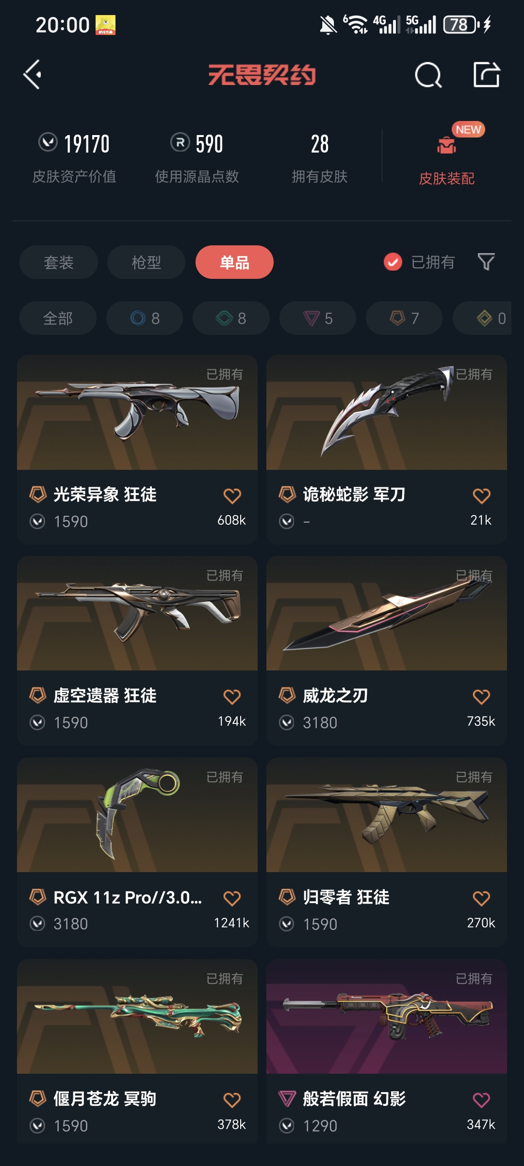 【游戏等级】lv119 【段位】 铂金ii 【r点】590 【皮肤总价值】19170 【英雄数量】28 【皮肤数量】28 【挂饰数量】67 【卡面数量】78 【喷漆数量】53 【标配】标配-阿特拉斯指挥部 标配-折光棱晶 标配-超能偶像 【幻影】幻影-般若假面 幻影-末日之翼 【正义】正义-日耀风暴 正义-离子武器 正义-超限闪存 【狂徒】狂徒-光荣异象 狂徒-诡秘蛇影 狂徒-虚空遗器 狂徒-