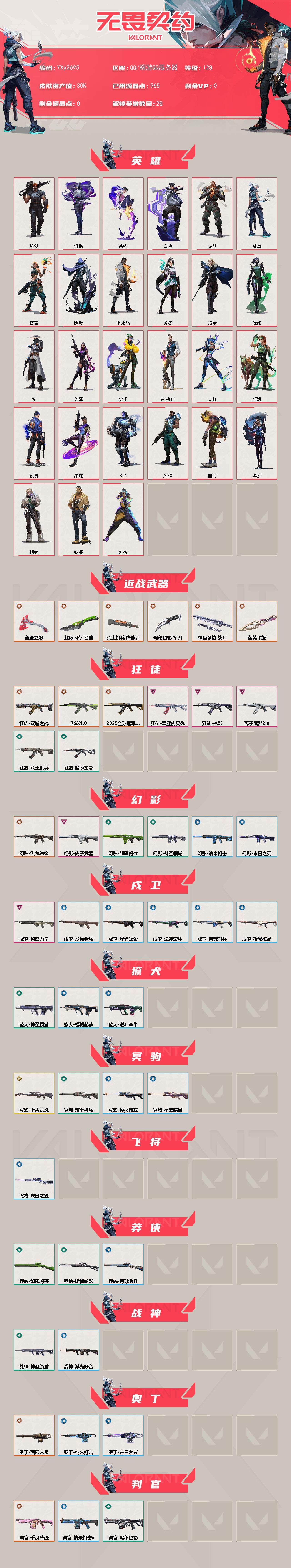 【3w库存落英飞旋.盖亚斧.六狂徒显卡.双城.25冠军.盖亚.掠夺.离子】y2695【无二次】【因赛季更新游戏段付以上号为准!】 【英雄】:幻棱,炼狱,维斯,暮蝶,钛狐,壹决,铁臂,捷风,雷兹,幽影,不死鸟,贤者,猎枭,蝰蛇,零,芮娜,奇乐,尚勃勒,霓虹,斯凯,夜露,星礈,k/o,海神,盖可,黑梦,钢锁 【近战 武器】:近战武器-落英飞旋,近战武器-超限闪存 匕首,近战武器-盖亚之怒,近战