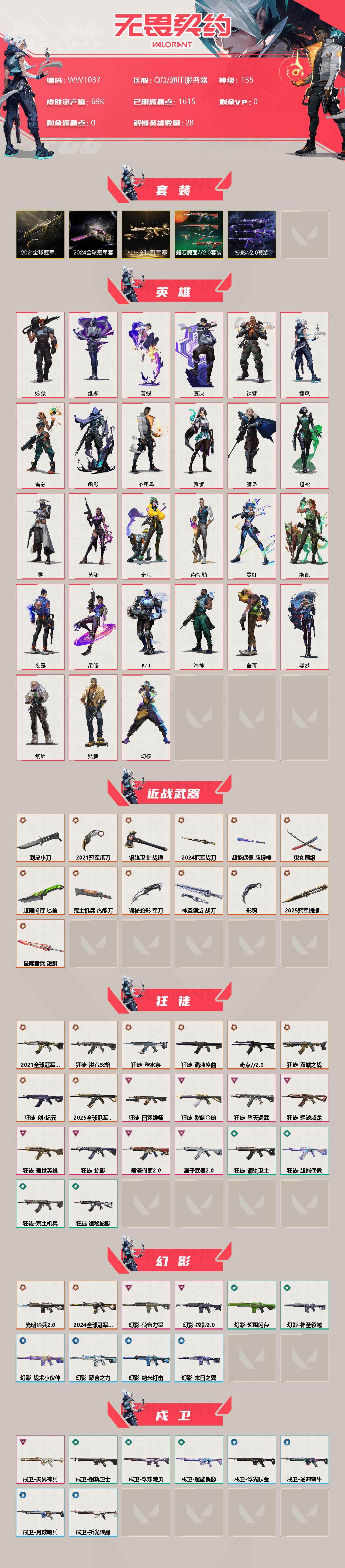 【ww1037】终极28/卓越18/皮肤147/等级155/段位:铂金/2025全球冠军赛套装/2024全球冠军赛套装/2021全球冠军赛/般若假面//2.0/掠影2.0套装/幻棱/炼狱/维斯/暮蝶/钛狐/壹决/铁臂/捷风/雷兹/幽影/不死鸟/贤者/猎枭/蝰蛇/零/芮娜/奇乐/尚勃勒/霓虹/斯凯/夜露/星礈/k/o/海神/盖可/黑梦/钢锁/近战武器-2025全球冠军赛 蝴蝶刀/2024