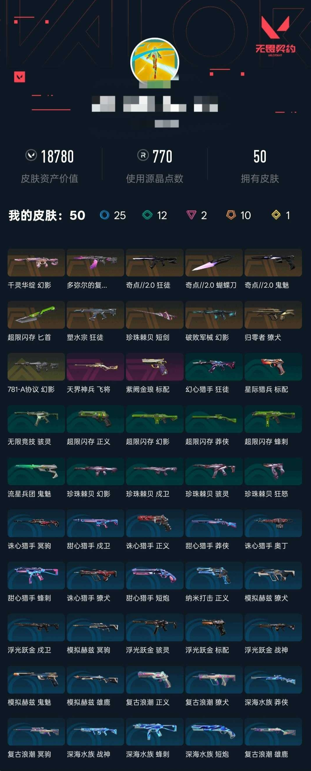 【无畏契约】【yhwww6493】等级:104,已用无畏点18780,已用源晶点770,金皮:幻影-781-a协议__橙皮:幻影-破败军械|幻影-千灵华绽|近战-超限闪存 匕首|近战-珍珠棘贝 短剑|狂徒-塑水宗|獠犬-归零者|狂徒-奇点2.0|鬼魅-奇点2.0|近战-奇点2.0 蝴蝶刀|狂徒-多弥尔的复仇__紫皮:标配-紫阙金琅|飞将-天界神兵__绿皮:骇灵-珍珠棘贝|幻影-珍珠棘贝|狂怒-珍珠棘贝|戍卫-珍珠棘贝|骇灵-无限竞技|正义-超限闪存|莽侠-超限闪存|幻影-超限闪存|蜂刺-超限闪存|鬼魅-流星兵团|标配-星际猎兵|狂徒-幻心猎手__蓝皮:獠犬-复古浪潮|冥驹-复古浪潮|雄鹿-复古浪潮|正义-复古浪潮|正义-纳米打击|骇灵-浮光跃金|标配-浮光跃金|戍卫-浮光跃金|战神-浮光跃金|鬼魅-模拟赫兹|獠犬-模拟赫兹|冥驹-模拟赫兹|雄鹿-模拟赫兹|战神-深海水族|短炮-深海水族|蜂刺-深海水族|莽侠-深海水族|蜂刺-甜心猎手|短炮-甜心猎手|莽侠-甜心猎手|幻影-甜心猎手|戍卫-甜心猎手|正义-诛心猎手|冥驹-诛心猎手|獠犬-诛心猎手|奥丁-诛心猎手__段位:黄金__英雄:尚勃勒|维斯|黑梦|斯凯|暮蝶|壹决|夜露|海神|奇乐|炼狱|贤者|猎枭|芮娜|零|捷风|不死鸟|幻棱|雷兹|禁灭