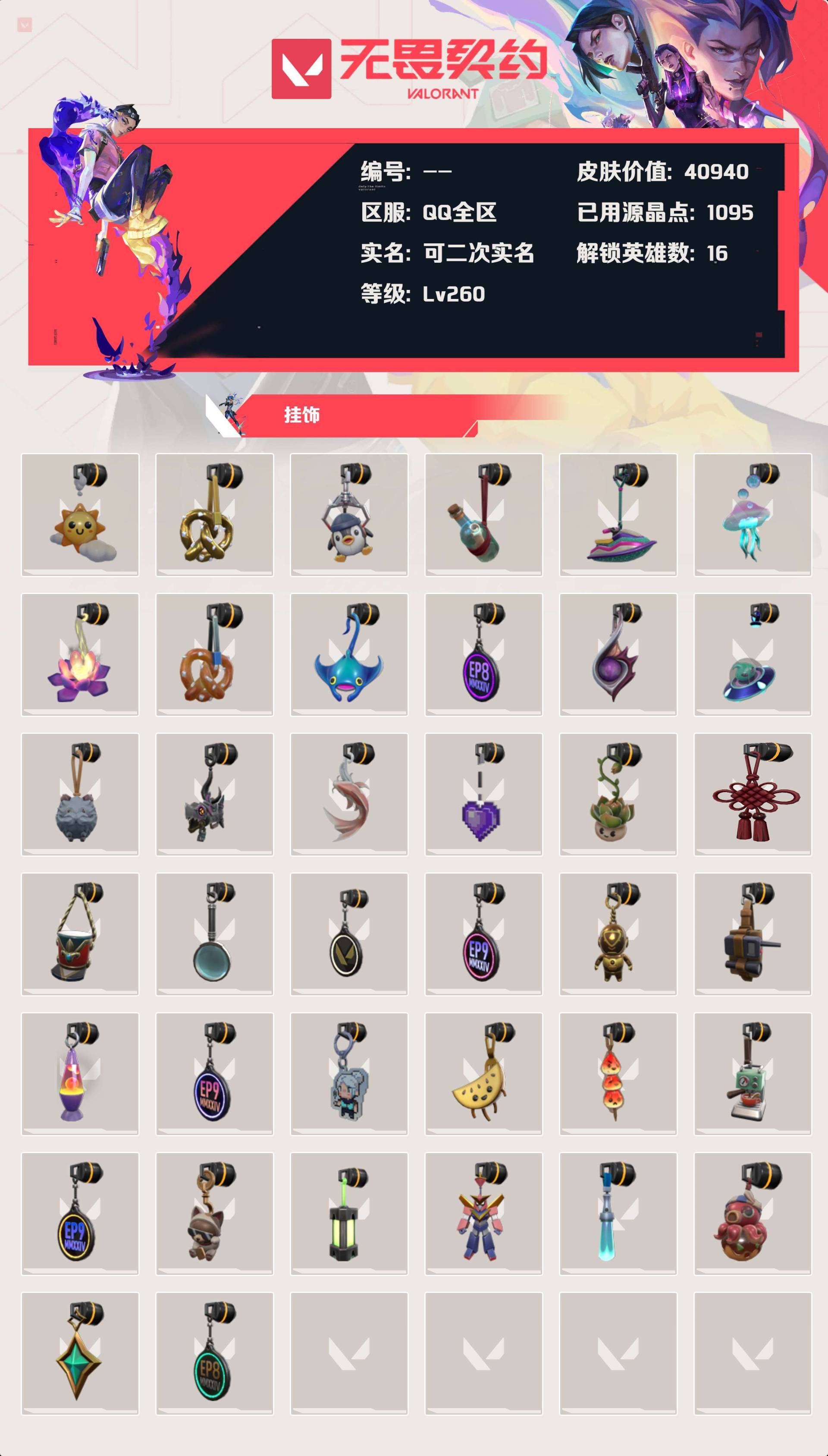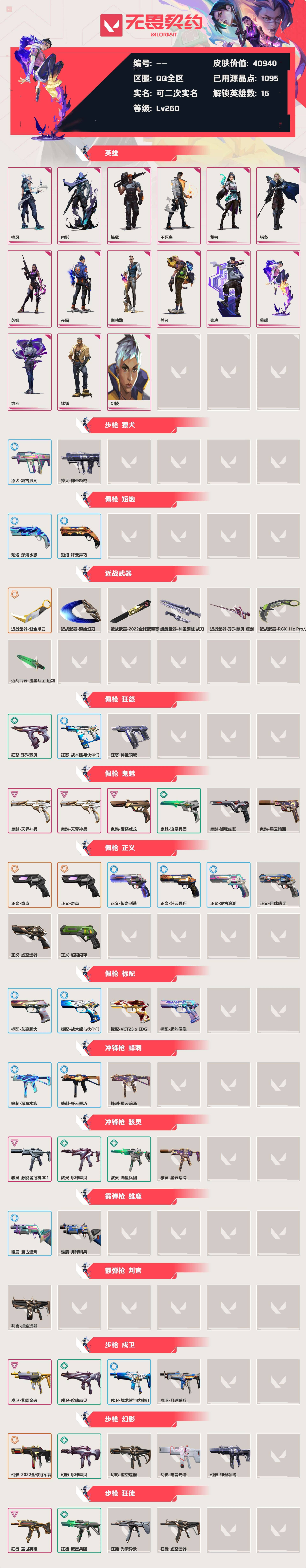 [14116691]等级:lv260 | 黄金i/ 已用源晶点:1095/ 皮肤价值:40940/ 英雄数:16/ 【英雄】 捷风 幽影 炼狱 不死鸟 贤者 猎枭 芮娜 夜露 尚勃勒 盖可 壹决 暮蝶 维斯 钛狐 幻棱 【套装】 紫阙金琅套装(紫阙金琅戍卫) 天界神兵套装(天界神兵鬼魅) 盖世英雄套装(盖世英雄狂徒) 源能者危机001套装(源能者危机001骇灵) rgx 11z pro//3.0(rgx11zpro//3.0爪刀) 耀鳞威龙(耀鳞威龙鬼魅) 英雄之选 礼包(天界神兵鬼魅) 紫阙金琅//2.0(紫金爪刀) 2022全球冠军赛套装(2022全球冠军赛蝴蝶刀2022全球冠军赛幻影) 回火礼包:奇点 礼包(奇点正义) 回响礼包 // v25 礼包(耀鳞威龙鬼魅) 光荣异象 礼包(光荣异象狂徒) 电音光谱 礼包(电音光谱幻影) 虚空遗器 礼包(虚空遗器狂徒虚空遗器幻影虚空遗器判官虚空遗器正义源始幻刃) 【步呛 獠犬】 獠犬-混沌序曲//2.0 獠犬-神圣领域 獠犬-复古浪潮 【佩呛 短炮】 短炮-深海水族 短炮-纤云弄巧 【近战武器】 近战武器-源始幻刃 近战武器-2022全球冠军赛 蝴蝶刀 近战武器-神圣领域 战刀 近战武器-紫金爪刀 近战武器-珍珠棘贝 短剑 近战武器-rgx 11z pro//3.0 爪刀 近战武器-流星兵团 短剑 【佩呛 狂怒】 狂怒-神圣领域 狂怒-战术熊与伙伴们 狂怒-珍珠棘贝 【佩呛 鬼魅】 鬼魅-诡秘蛇影 鬼魅-星云暗涌 鬼魅-流星兵团 鬼魅-天界神兵 鬼魅-天界神兵 鬼魅-耀鳞威龙 【佩呛 正义】 正义-月球哨兵 正义-虚空遗器 正义-日耀风暴 正义-传奇制造 正义-纤云弄巧 正义-复古浪潮 正义-超限闪存 正义-奇点 正义-奇点 【佩呛 标配】 标配-vct25 x edg 标配-阿特拉斯指挥部 标配-星际猎兵 标配-艺高胆大 标配-战术熊与伙伴们 标配-超能偶像 【冲锋呛 蜂刺】 蜂刺-星云暗涌 蜂刺-深海水族 蜂刺-纤云弄巧 【冲锋呛 骇灵】 骇灵-星云暗涌 骇灵-珍珠棘贝 骇灵-流星兵团 骇灵-源能者危机001 【霰弹呛 雄鹿】 雄鹿-月球哨兵 雄鹿-复古浪潮 【霰弹呛 判官】 判官-虚空遗器 【步呛 戍卫】 戍卫-月球哨兵 戍卫-战术熊与伙伴们 戍卫-珍珠棘贝 戍卫-紫阙金琅 【步呛 幻影】 幻影-虚空遗器 幻影-2022全球冠军赛 幻影-电音光谱 幻影-神圣领域 幻影-珍珠棘贝 【步呛 狂徒】 狂徒-光荣异象 狂徒-2025全球冠军赛 狂徒-虚空遗器 狂徒-流星兵团 狂徒-盖世英雄 【狙击呛 冥驹】 冥驹-滋滋x特攻队 冥驹-星云暗涌 冥驹-复古浪潮 【狙击呛 莽侠】 莽侠-超时空卫队 莽侠-月球哨兵 莽侠-纤云弄巧 莽侠-深海水族 【狙击呛 飞将】 飞将-战术熊与伙伴们