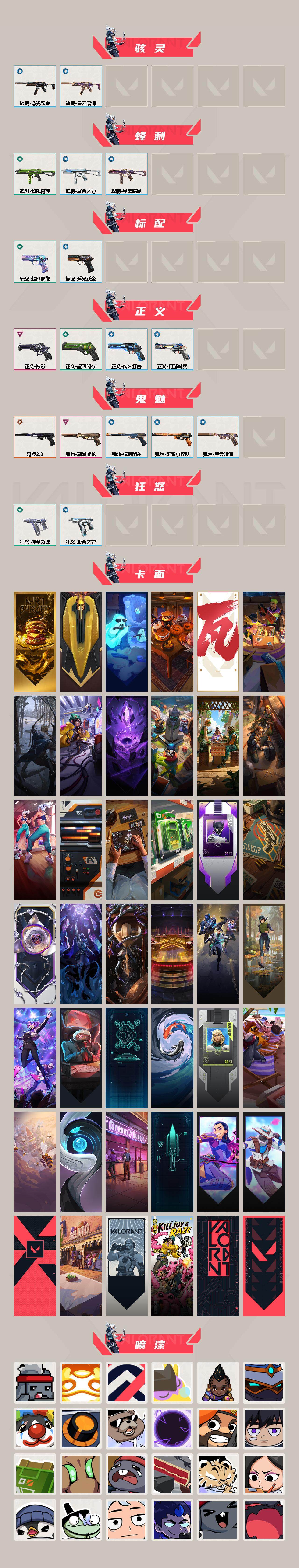 [14126965]【套装】:奇点//2.0套装,掠影套装 【英雄】:幻棱,炼狱,维斯,暮蝶,钛狐,壹决,铁臂,捷风,雷兹,幽影,不死鸟,贤者,猎枭,蝰蛇,零,芮娜,奇乐,尚勃勒,霓虹,斯凯,夜露,星礈,k/o,海神,盖可,黑梦,钢锁 【近战 武器】:近战武器-奇点//2.0 蝴蝶刀,近战武器-rgx 11z pro//3.0 爪刀,近战武器-超能偶像 应援棒,近战武器-超限闪存 匕首,近战武器-影刃,近战武器-神圣领域 战刀 【狂徒】:狂徒-光明哨兵,狂徒-归零者,狂徒-奇点//2.0,狂徒-冰点凝冻,狂徒-掠影,狂徒-超能偶像 【幻影】:幻影-盖亚的复仇//2.0,幻影-离子武器,幻影-侦察力量,幻影-超限闪存,幻影-神圣领域,幻影-聚合之力 【戍卫】:戍卫-掠影,戍卫-超能偶像,戍卫-浮光跃金,戍卫-月球哨兵 【獠犬】:獠犬-神圣领域,獠犬-采蜜小蜂队,獠犬-模拟赫兹 【冥驹】:冥驹-掠影,冥驹-离子武器,冥驹-模拟赫兹,冥驹-星云暗涌 【飞将】:飞将-聚合之力 【莽侠】:莽侠-超限闪存,莽侠-月球哨兵 【战神】:战神-神圣领域,战神-采蜜小蜂队,战神-浮光跃金 【判官】:判官-超能偶像,判官-采蜜小蜂队 【雄鹿】:雄鹿-模拟赫兹,雄鹿-月球哨兵 【骇灵】:骇灵-浮光跃金,骇灵-星云暗涌 【蜂刺】:蜂刺-超限闪存,蜂刺-聚合之力,蜂刺-星云暗涌 【标配】:标配-超能偶像,标配-浮光跃金 【正义】:正义-掠影,正义-超限闪存,正义-纳米打击,正义-月球哨兵 【鬼魅】:鬼魅-奇点//2.0,鬼魅-耀鳞威龙,鬼魅-采蜜小蜂队,鬼魅-模拟赫兹,鬼魅-星云暗涌 【狂怒】:狂怒-神圣领域,狂怒-聚合之力 【卡面】:终章:激斗汉堡 卡面,进入射程 卡面,精灵大战 卡面,南瓜盛典 卡面,vct cn首冠 卡面,唱片的故事 卡面,钢弓与箭弦 卡面,排除故障 卡面,奇点//2.0 卡面,战术桌游 卡面,悠享食光 卡面,修车达人 卡面,热舞环节 卡面,模拟赫兹 卡面,浮光跃金 卡面,超限闪存 卡面,维斯工牌 卡面,正义的化身 卡面,铁之华 卡面,失而复得 卡面,时间到 卡面,最高舞台 卡面,复活专家 卡面,归乡 // 蝰蛇 卡面,超能偶像 卡面,生意人麦宝 卡面,声感陷阱设计图 卡面,红鳞松叶 卡面,钢锁工牌 卡面,战术小伙伴的夏日 卡面,采蜜小蜂队 卡面,聚合之力 卡面,梦幻奶茶 卡面,零点嗅探设