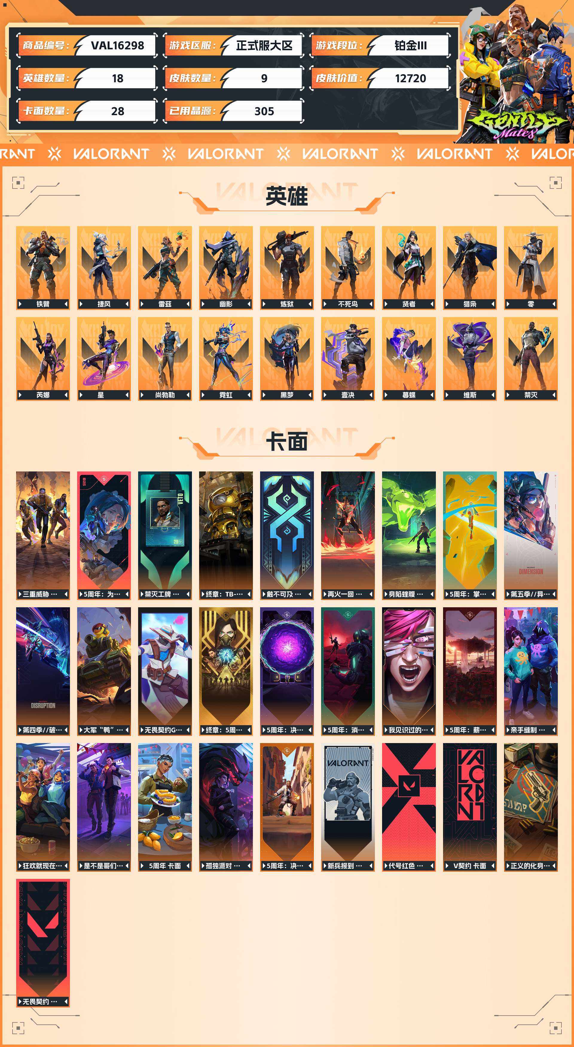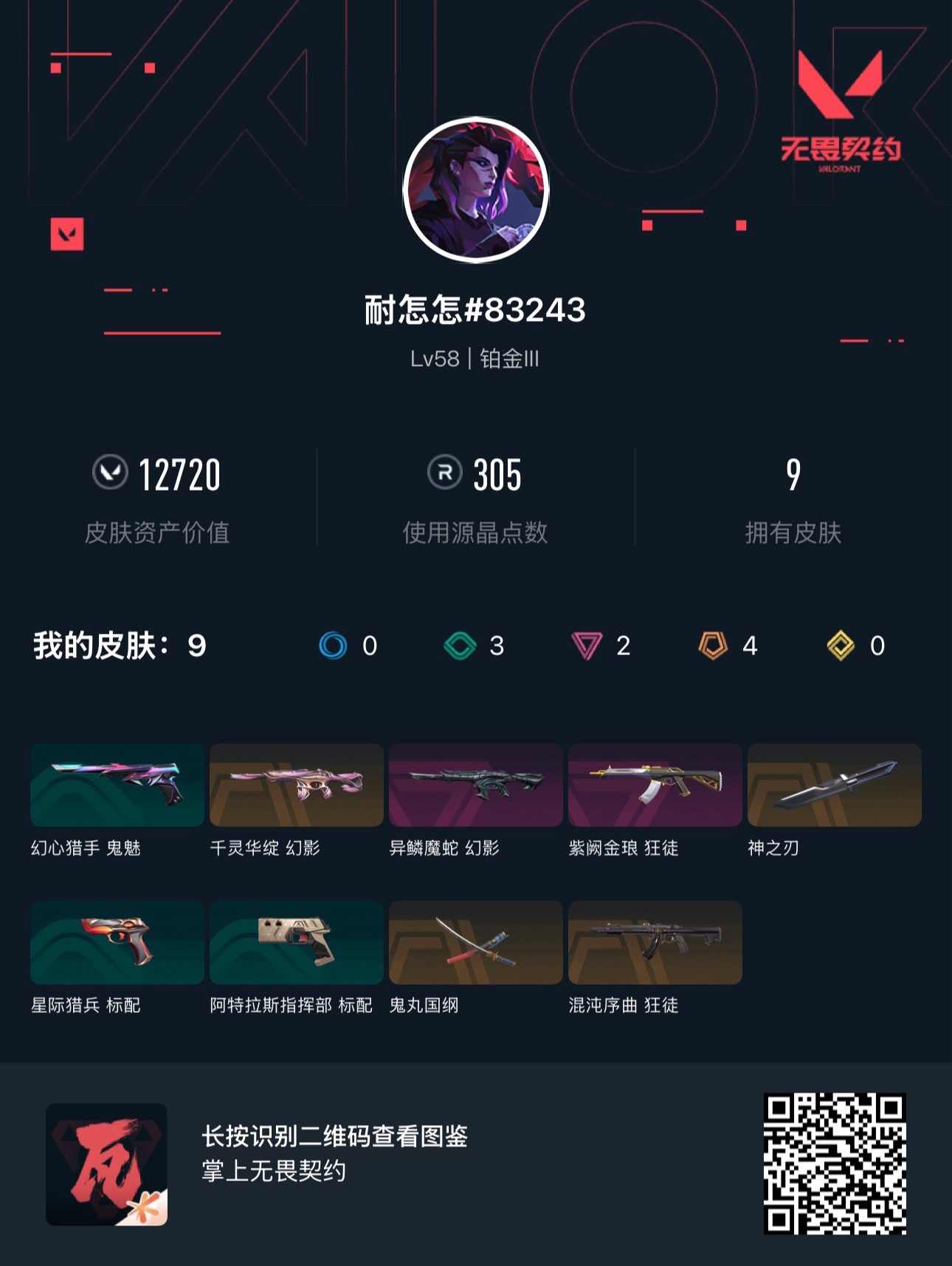 val16298|可二次 铂金iii 皮肤价值12720 已用晶源305 皮肤数量9 限定4 卓越2 奢华3【拥有皮肤】鬼丸国纲神之刃千灵华绽 幻影混沌序曲 狂徒异鳞魔蛇 幻影紫阙金琅 狂徒星际猎兵 标配阿特拉斯