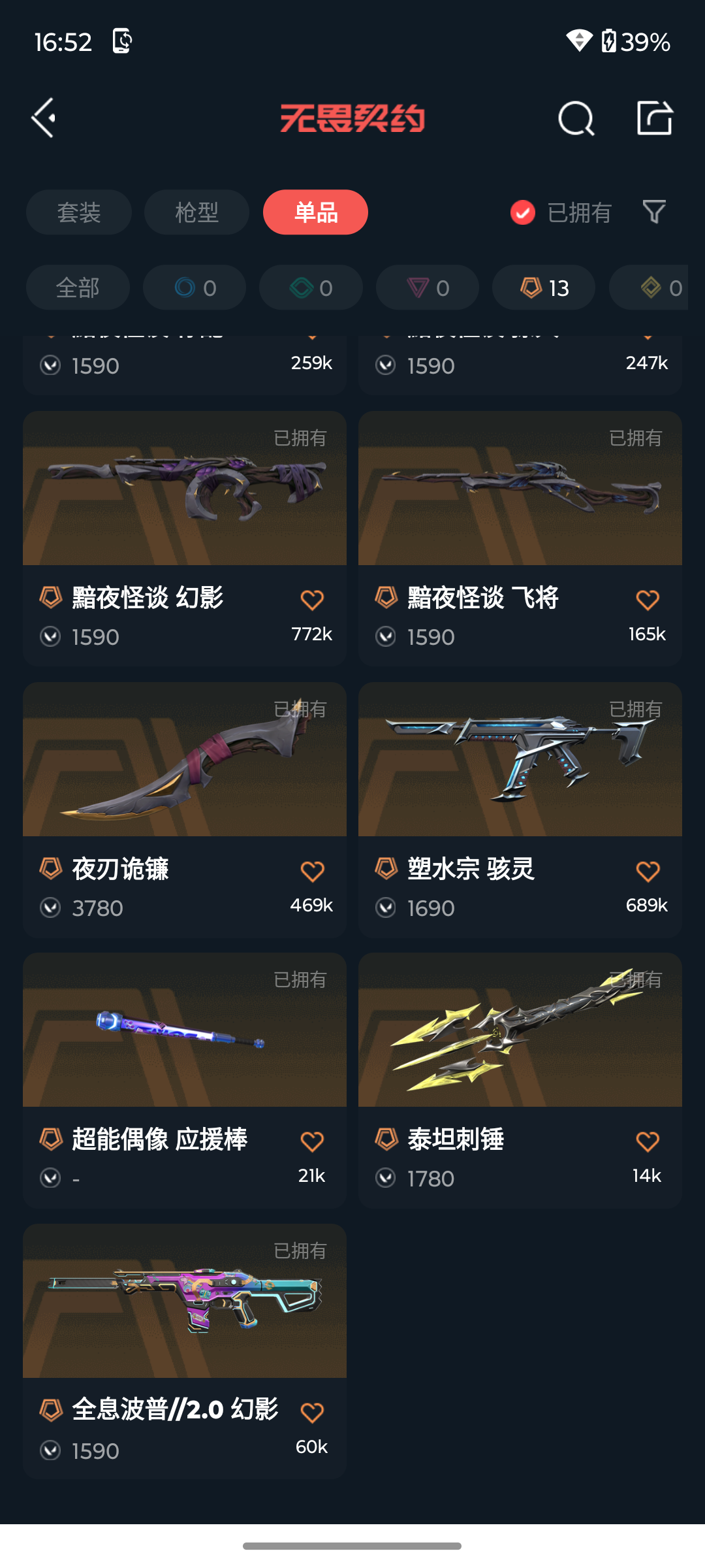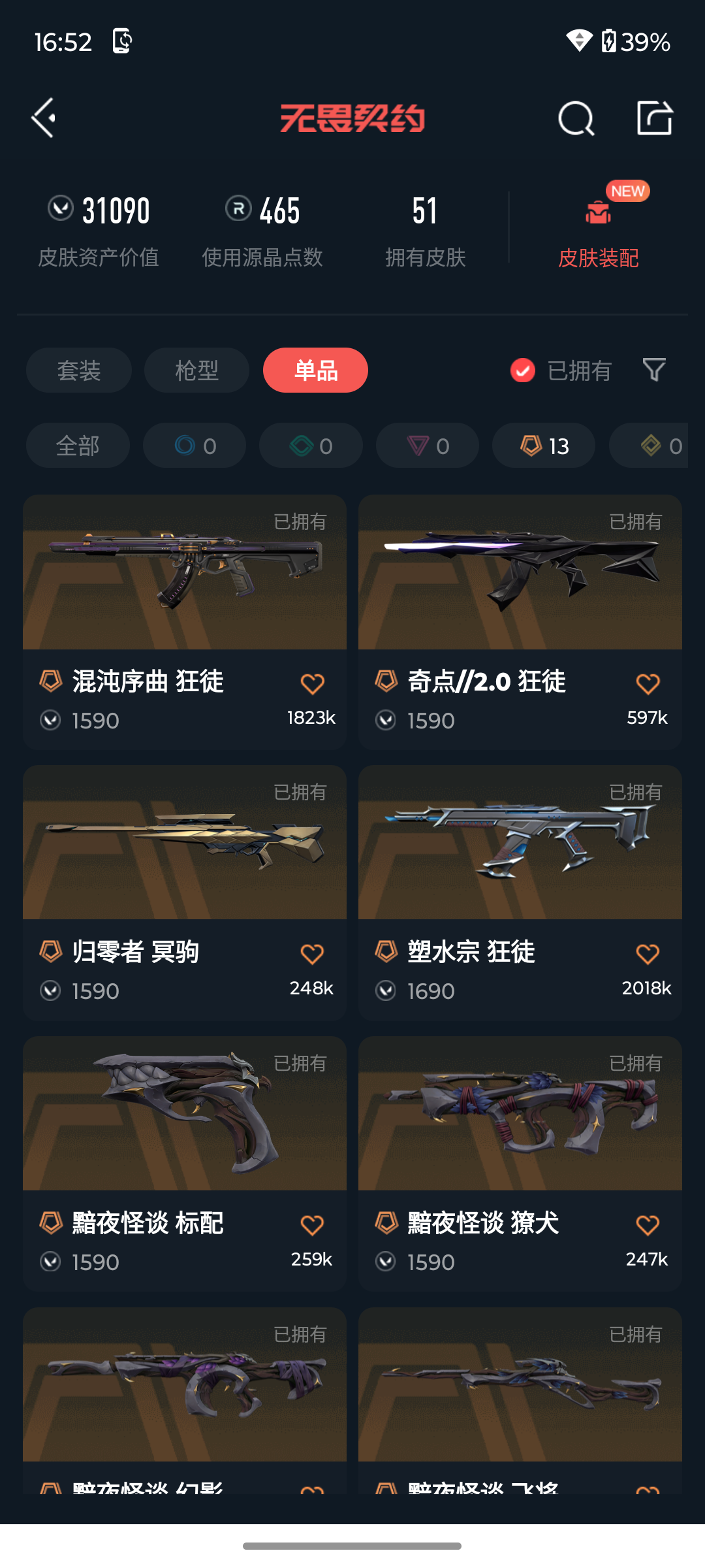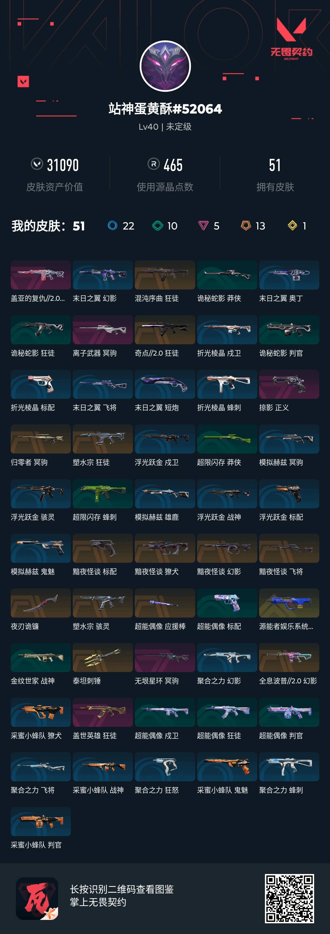 [14137744]s188747 黯夜怪谈套装无畏契约/40等级/未定级段位/16英雄/51皮肤/资产31090/已使用r点465/剩余r点35/剩余点卷819/黯夜怪谈-幻影黯夜怪谈-獠犬黯夜怪谈-飞将黯夜怪谈-标配夜刃诡镰 超能偶像-应援棒,泰坦刺锤,混沌序曲-狂徒,塑水宗-狂徒,全息波普//2.0-幻影,奇点//2.0-狂徒,源能者娱乐系统-獠犬,盖世英雄-狂徒,盖亚的复仇//2.0-幻影归零者-冥驹,无垠星环-冥驹,离子武器-冥驹,掠影-正义,塑水宗-骇灵