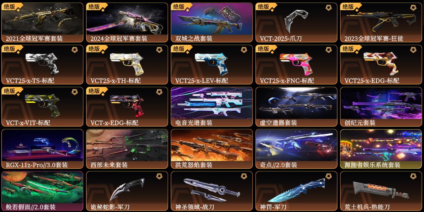 [14142125](2021全球冠军赛套装/2024全球冠军赛套装/电音光谱套装/虚空遗器套装/西部未来套装/创纪元套装/双城之战套装/洪荒怒焰套装/奇点2.0套装/般若假面2.0套装/rgx-11z-pro//3.0套装/源能者娱乐系统套装)b189238 无畏契约/195等级/未定级/27英雄/227皮肤/176925资产/已使用r点1885/剩余r点0/2021全球冠军赛-狂徒,2021全球冠军赛-爪刀,2024全球冠军赛-幻影,2024全球冠军赛-战刀,vct-2025-爪刀,双城之战-狂徒,双城之战-拳套,电音光谱-幻影,电音光谱-獠犬,电音光谱-戍卫,电音光谱-标配,谐波音谱,虚空遗器-狂徒,虚空遗器-幻影,虚空遗器-判官,虚空遗器-正义,源始幻刃,西部未来-幻影,西部未来-奥丁,西部未来-飞将,西部未来-正义,未来开拓者,创·纪元-狂徒,创·纪元-莽侠,创·纪元-骇灵,创·纪元-正义,镭切,洪荒怒焰-幻影,洪荒怒焰-狂徒,洪荒怒焰-骇灵,洪荒怒焰-短炮,洪荒双斩,奇点//2.0-狂徒,奇点//2.0-鬼魅,奇点//2.0-蝴蝶刀,般若假面//2.0-狂徒,般若假面//2.0-獠犬,般若假面//2.0-战神,般若假面//2.0-狂怒,鬼丸国纲,rgx-11z-pro//3.0-莽侠,rgx-11z-pro//3.0-正义,rgx-11z-pro//3.0-爪刀,源能者娱乐系统-幻影.源能者娱乐系统-冥驹,源能者娱乐系统-獠犬,源能者娱乐系统-鬼魅,街机高手,诡秘蛇影-军刀,神圣领域-战刀,神罚-军刀,荒土机兵-热能刀,超限闪存-匕首,超能偶像-应援棒,流星兵团-短剑,珍珠棘贝-短剑,弧光异彩-军刀,巨神铁甲-短剑,澄湖潋滟,合金战车-军刀,影钩,夜刃诡镰,黑波之刃,剥皮小刀,侦察力量-蝴蝶刀,混沌序曲-狂徒,塑水宗-狂徒,全息波普//2.0-幻影,2023全球冠军赛-狂徒,归零者-狂徒,奇点-幻影,781-a协议-獠犬,艾沃莉的梦之翼-狂徒,掠影//2.0-幻影,离子武器//2.0-狂徒,天界神兵-戍卫,紫阙金琅-狂徒,盖亚的复仇-狂徒,塑水宗-飞将,归零者-冥驹,偃月苍龙-冥驹,上古龙炎-冥驹,掠影//2.0-奥丁,天界神兵//2.0-奥丁,偃月苍龙-判官,离子武器-雄鹿,vct25-x-fnc-标配,vct25-x-ts-标配,vct25-x-edg-标配,vct25-x-th-标配,vct25-x-lev-标配,vct-x-edg-标配,vct-x-vit-标配,掠影//2.0-鬼魅,天界神兵-鬼魅,紫阙金琅-标配,离子武器-正义,掠影-正义