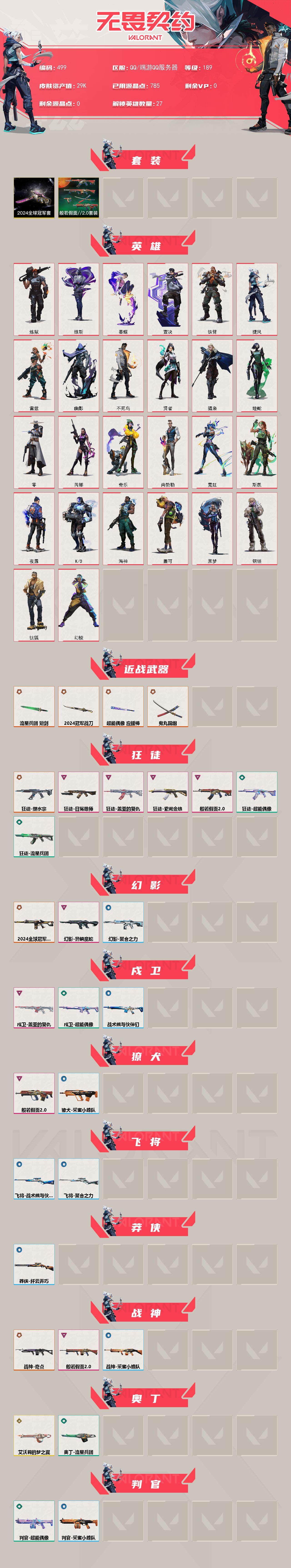 【499】xq27334 【套装】:2024全球冠军赛套装,般若假面//2.0套装 【英雄】:幻棱,炼狱,维斯,暮蝶,钛狐,壹决,铁臂,捷风,雷兹,幽影,不死鸟,贤者,猎枭,蝰蛇,零,芮娜,奇乐,尚勃勒,霓虹,斯凯,夜露,k/o,海神,盖可,黑梦,钢锁 【近战 武器】:近战武器-2024全球冠军赛 战刀,近战武器-鬼丸国纲,近战武器-流星兵团 短剑,近战武器-超能偶像 应援棒 【狂徒】:狂徒-塑水宗,狂徒-般若假面//2.0,狂徒-盖亚的复仇,狂徒-日冕雄师,狂徒-紫阙金琅,狂徒-超能偶像,狂徒-流星兵团 【幻影】:幻影-2024全球冠军赛,幻影-异鳞魔蛇,幻影-聚合之力 【戍卫】:戍卫-盖亚的复仇,戍卫-超能偶像,戍卫-战术熊与伙伴们 【獠犬】:獠犬-般若假面//2.0,獠犬-采蜜小蜂队 【飞将】:飞将-聚合之力,飞将-战术熊与伙伴们 【莽侠】:莽侠-纤云弄巧 【战神】:战神-奇点,战神-般若假面//2.0,战神-采蜜小蜂队 【奥丁】:奥丁-艾沃莉的梦之翼,奥丁-流星兵团 【判官】:判官-超能偶像,判官-采蜜小蜂队 【雄鹿】:雄鹿-离子武器 【骇灵】:骇灵-流星兵团 【蜂刺】:蜂刺-聚合之力,蜂刺-纤云弄巧 【标配】:标配-超能偶像,标配-战术熊与伙伴们 【正义】:正义-千灵华绽,正义-超限闪存,正义-纤云弄巧 【鬼魅】:鬼魅-流星兵团,鬼魅-诡秘蛇影,鬼魅-采蜜小蜂队,鬼魅-扑棱扑棱 【狂怒】:狂怒-般若假面//2.0,狂怒-聚合之力,狂怒-战术熊与伙伴们 【短炮】:短炮-梦魇恶魔,短炮-纤云弄巧 【卡面】:《双城之战》拥抱 卡面,精灵大战 卡面,欢迎来到底城 卡面,南瓜盛典 卡面,无畏契约:暮蝶 卡面,修车达人 卡面,正义的化身 卡面,终章:生意人麦宝 卡面,铁之华 卡面,2024全球冠军赛 卡面,失而复得 卡面,时间到 卡面,最高舞台 卡面,复活专家 卡面,归乡 // 蝰蛇 卡面,超能偶像 卡面,生意人麦宝 卡面,声感陷阱设计图 卡面,钢锁工牌 卡面,战术小伙伴的夏日 卡面,采蜜小蜂队 卡面,聚合之力 卡面,梦幻奶茶 卡面,终章:打造专属狂徒 卡面,趁热吃 卡面,西装暴徒 卡面,失控边缘 卡面,哨卫者之领域 卡面,暮蝶工牌 卡面,战术熊与伙伴们 卡面,源能反应 卡面,流星兵团 卡面,纤云弄巧 卡面,暂别喧嚣 卡面,打造专属狂徒 卡面,零点嗅探设计图 卡面,无畏契约go!第一卷:芮娜 卡面,清除名单 卡面,无畏契约go!第一卷:零 卡面,《双城之战》金克丝 卡面,铁臂设计图 卡面,代号红色 卡面,新兵报到 卡面,v契约 卡面,无畏契约 卡面,暗潮 卡面 【喷漆】:嗨宝南瓜灯 喷漆,嘭! 喷漆,都算到了 喷漆,控场勿近 喷漆,伤心心 喷漆,小丑猫 喷漆,熊抱 喷漆,记在小本本 喷漆,2024全球冠军赛 喷漆,又被闪了 喷漆,终极羞辱 喷漆,超级粉丝 喷漆,黯兽卖萌 喷漆,捷风差距 喷漆,惊声尖叫 喷漆,五人成星 喷漆,超能偶像 喷漆,放我出去 喷漆,掩护我 喷漆,大佬发呛 喷漆,边缘试探 喷漆,拼一呛 喷漆,聚合之力 喷漆,采蜜小蜂队 喷漆,梦幻小队 喷漆,五个全都齐了 喷漆,加油!加油! 喷漆,开心到爆炸 喷漆,皮蛋萌舞 喷漆,我觉得不行 喷漆,头号粉丝 喷漆,吸一口快乐 喷漆,永远的答案 喷漆,再来一次? 喷漆,别挡我的路! 喷漆,我的刀呢? 喷漆,当然可以 喷漆,流星兵团 喷漆,战术熊与伙伴们 喷漆,禁止喷漆 喷漆,纤云弄巧 喷漆,铁臂尴尬 喷漆,买装还是存钱 喷漆,暴走萝莉 喷漆,胜利属于无畏契约 喷漆,glhf 喷漆,无畏契约 喷漆 【挂饰】:悠闲鸡块 挂饰,伞绳 挂饰,《双城之战》小蛋糕 挂饰,第九季//第三幕 纪念币 挂饰,工具腰带 挂饰,熔岩灯 挂饰,第九季//第二幕 纪念币 挂饰,终章:这瓜保熟 挂饰,2024全球冠军赛 挂饰,炼狱雪糕 挂饰,糖葫芦 挂饰,袖珍捷风 挂饰,冲上云霄 挂饰,超能偶像 挂饰,迷你浓缩 挂饰,这瓜保熟 挂饰,动力机箱 挂饰,采蜜小蜂队 挂饰,第九季//第一幕 纪念币 挂饰,聚合之力 挂饰,第八季:白银 挂饰,终章:迷你机甲 挂饰,犯困的布鲁诺 挂饰,战术河童 挂饰,招财猫熊 挂饰,迷你机甲 挂饰,荧光棒 挂饰,章鱼烧先生 挂饰,流星兵团 挂饰,云开见日 挂饰,第八季//第三幕 纪念币 挂饰,第八季//第二幕 纪念币 挂饰 ,天外飞客 挂饰,第七季//第三幕 纪念币 挂饰,无畏契约 纪念币 挂饰